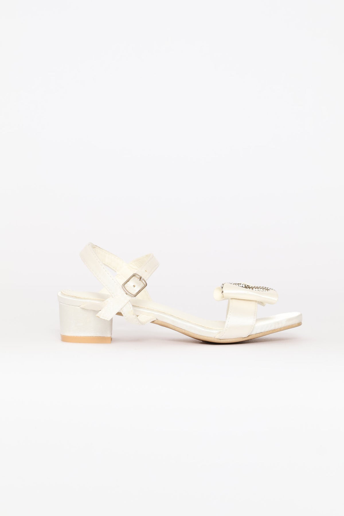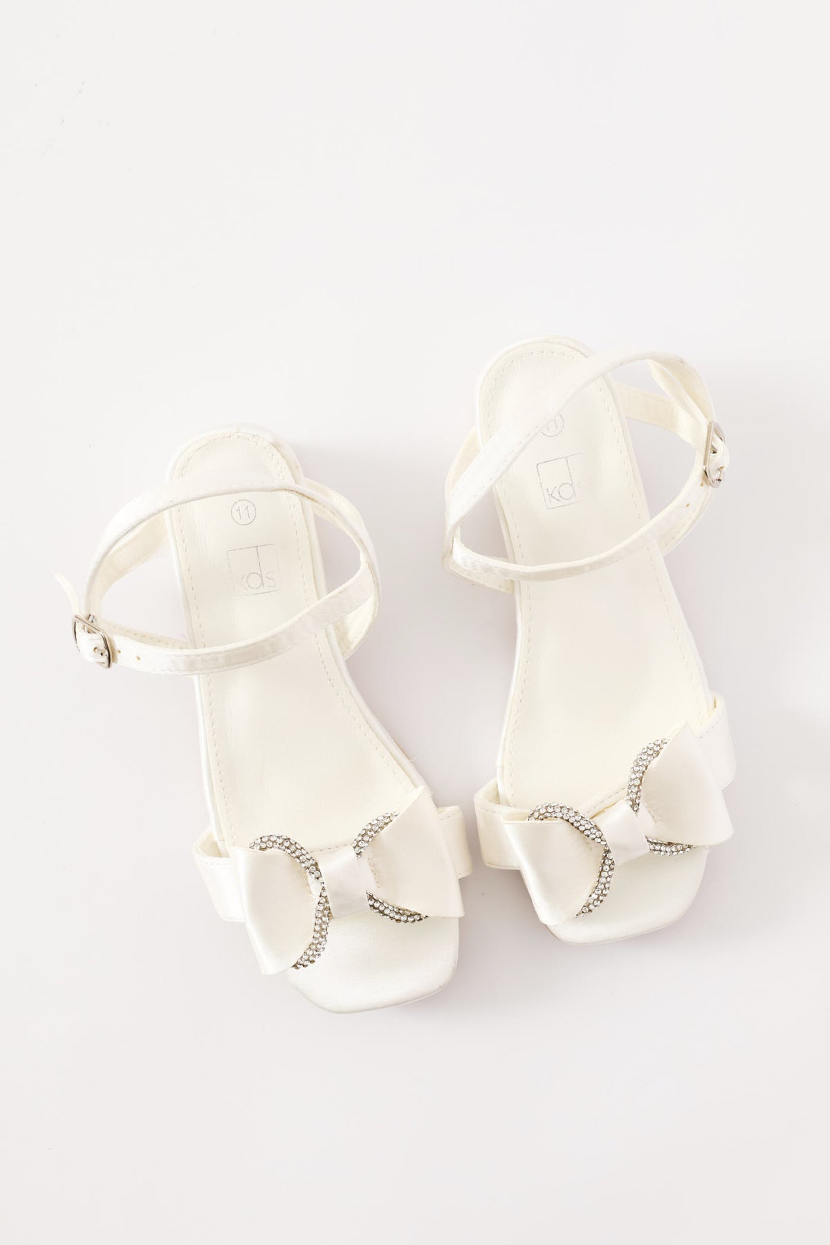 Pre-Girls Satin Diamante Occasion Sandal - White