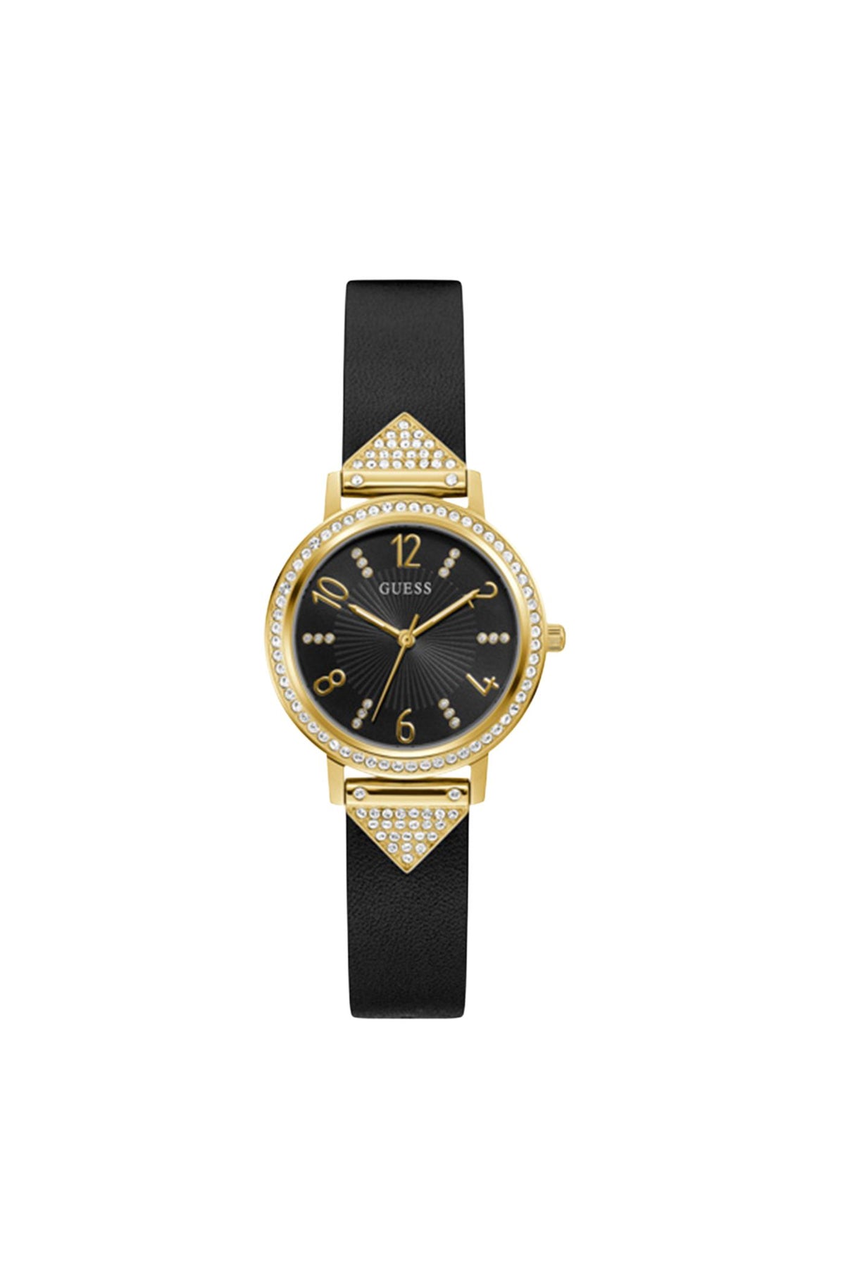 Gold Case With Crystals & Black Dial With Black Glitzy Leather Strap - Gold
