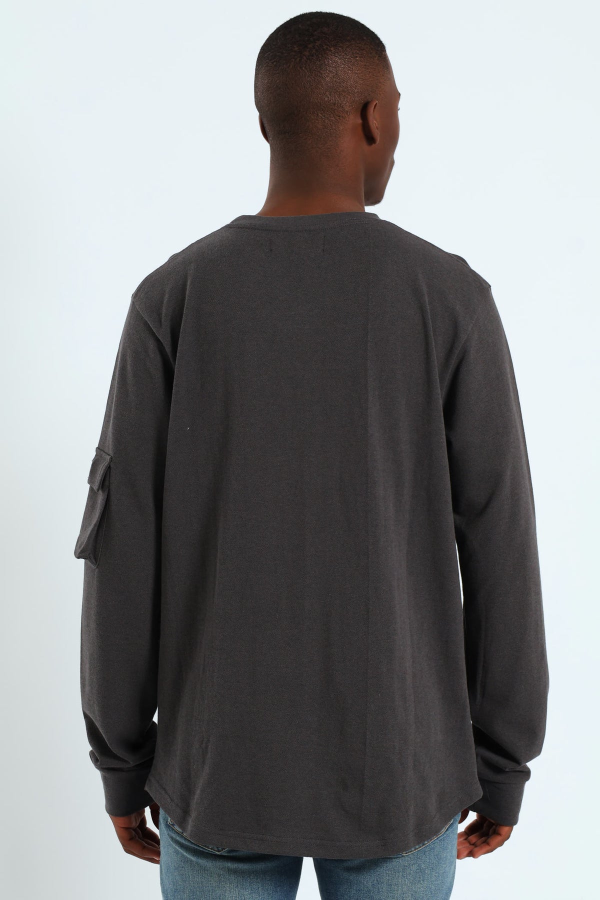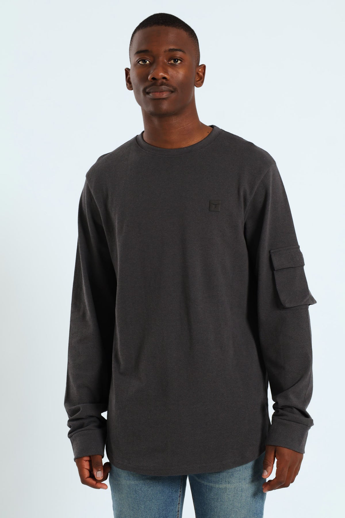 Utility Curved Hem Long Sleeve Tee - Charcoal