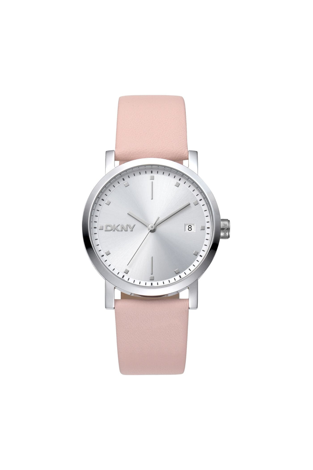 Urban Stainless Steel Case & Silver Date Dial Watch With Pink Leather Strap - Pink