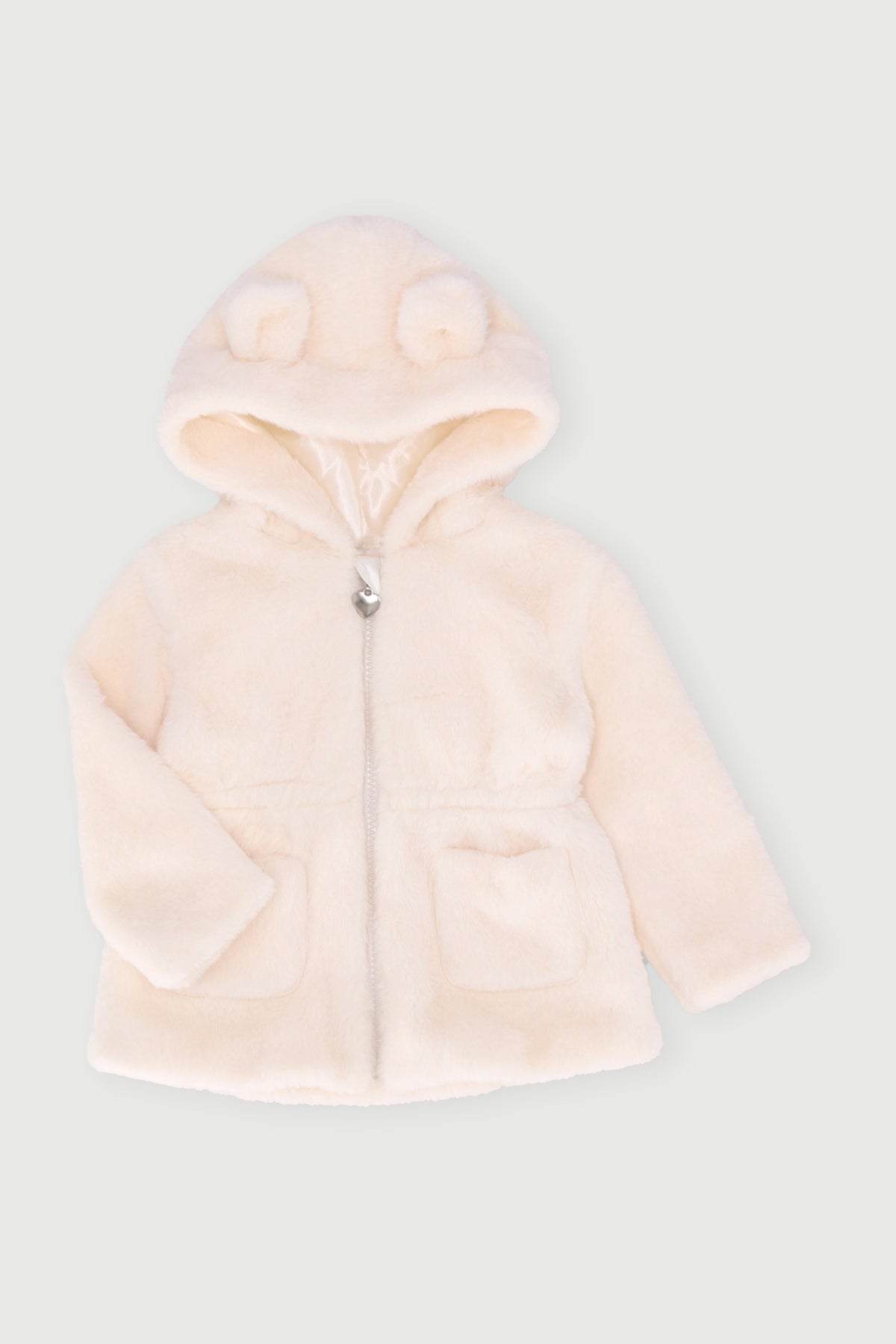 Baby Girls Faux Fur Hoody Jacket - Cream