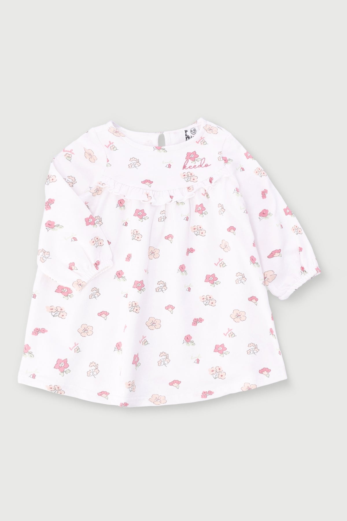 Keedo Baby Girls Floral Fleece Dress - Cream