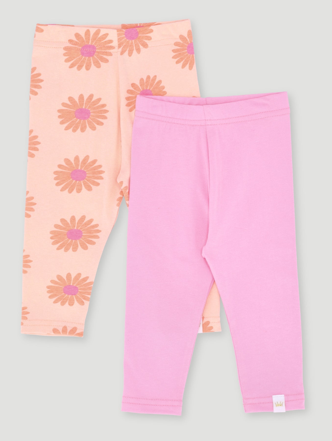 Baby Girls 2 Pack Flower Print Knit Legging - Pink/Orange