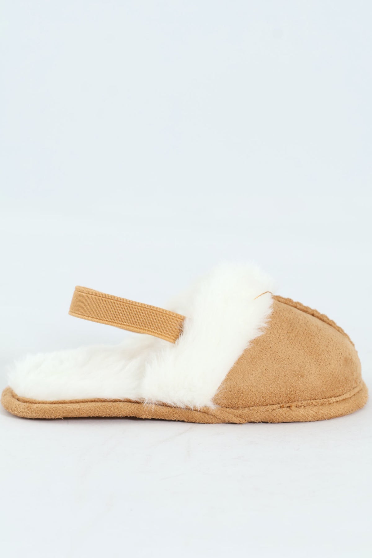 Baby Boys Slipper With Fur And Backstrap - Tan