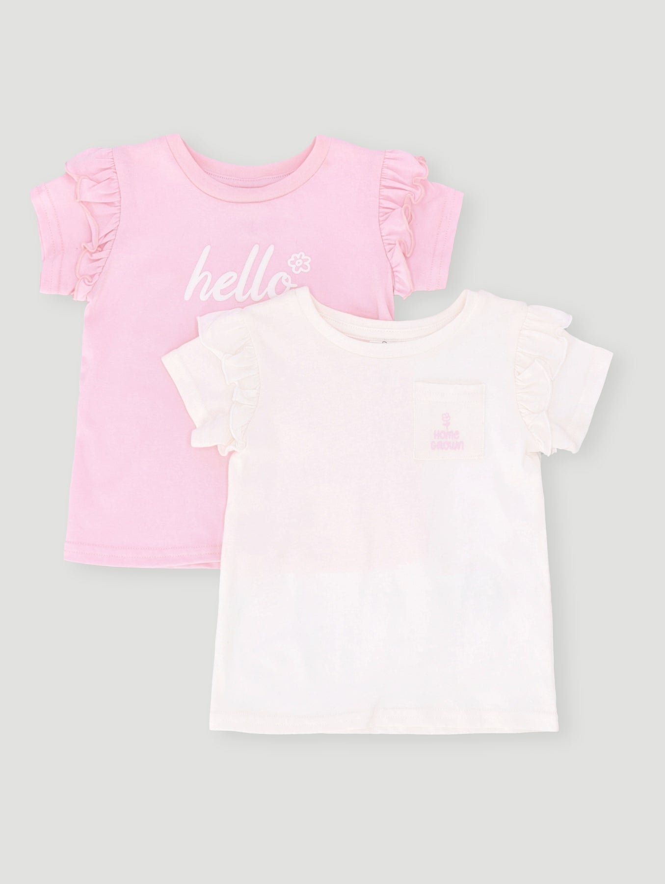 Baby Girls 2 Pack Hello Frill Tee - Dusty Pink
