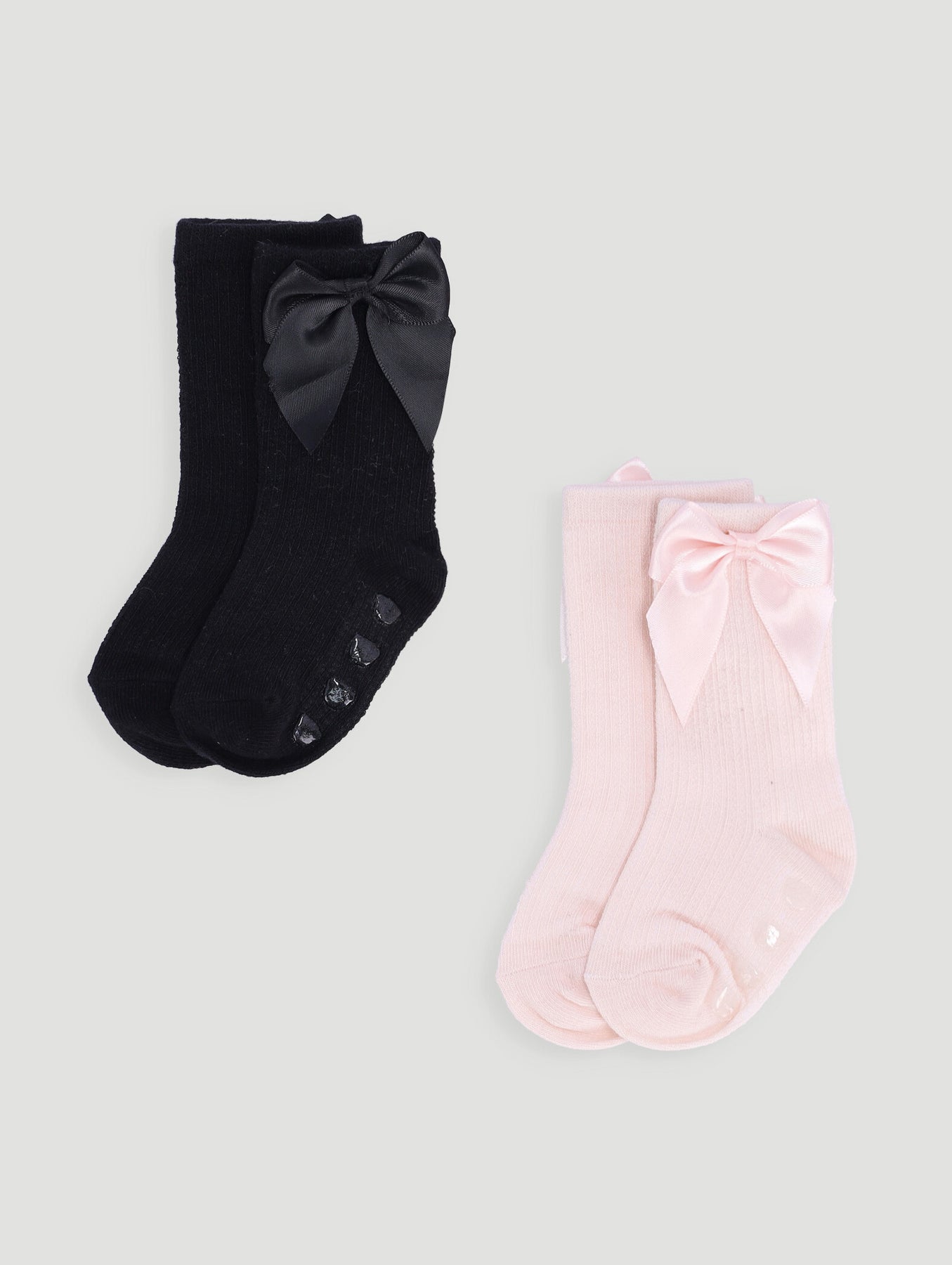 Baby Girls 2 Pack Knee High Socks - Black/Beige