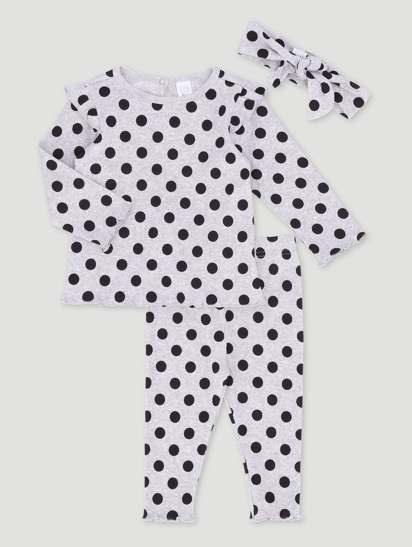Baby Girls Ribbed Polka Dot Hair Band Set - Grey