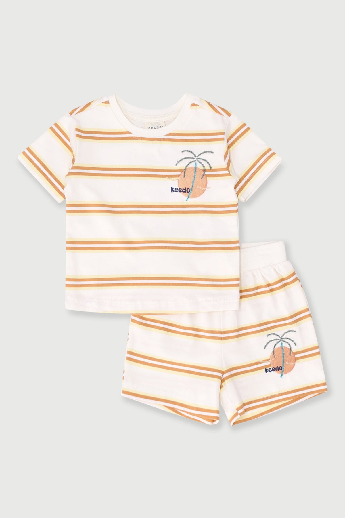 Keedo Baby Boys Tee & Short Stripe Set - Stone