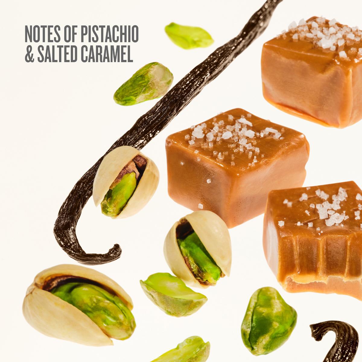 Irresistible and sunny, this iconic fragrance opens with creamy pistachio, while a hint of salted caramel unites with jasmine petals and vanilla.