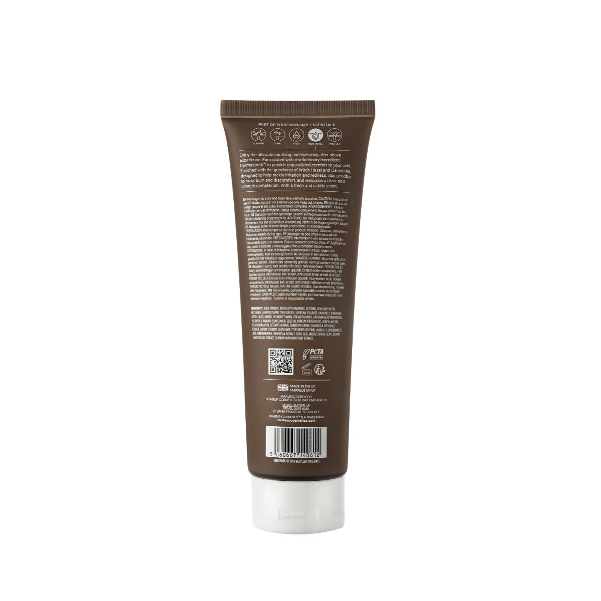 USAGE: Enjoy the ultimate soothing and hydrating after-shave experience. Formulated with revolutionary ingredient Dermasooth™ to provide unparalleled comfort to your skin. Enriched with the goodness of Witch Hazel and Calendula, designed to tackle inflammation and redness. Say goodbye to razor burn, irritation and discomfort and welcome a clear, smooth complexion. With a fresh subtle sent. Suitable for all skin types, and for both day and night use.