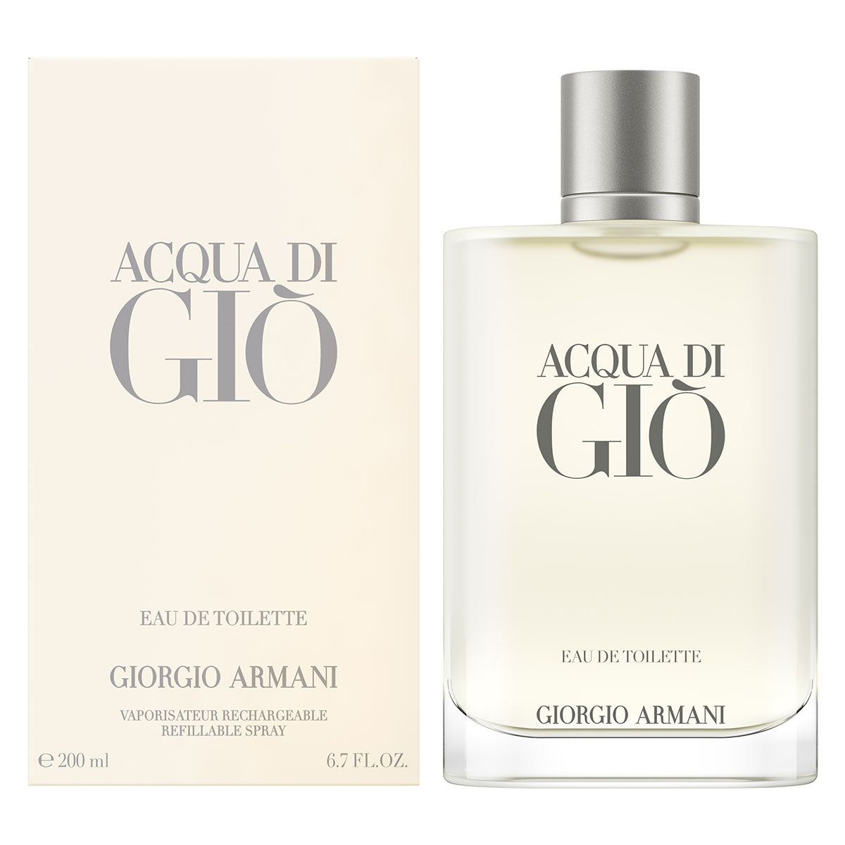 ACQUA DI GIÒ EAU DE TOILETTE marks the fragrance’s beginning and remains its original signature today. In a new modern bottle, the icon preserves its frosted glass, signature of the fragrance, which now graduates to the transparent glass at the vessel’s base.