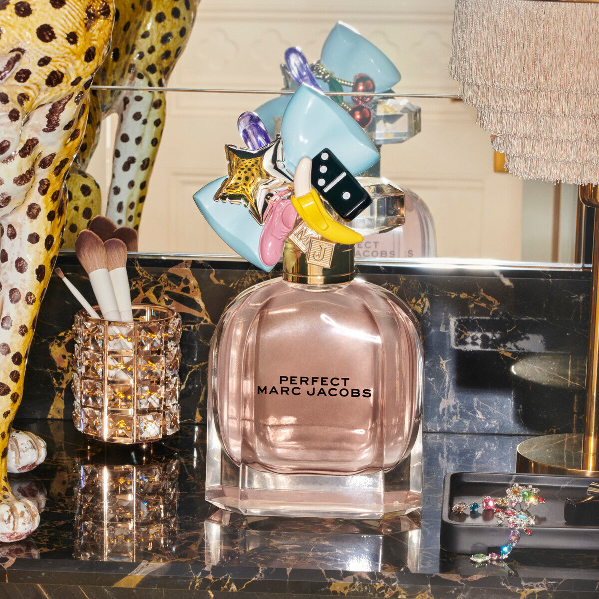 Apply Marc Jacobs Perfect Elixir to the pulse points on your wrists, neck, chest, and behind the ears.