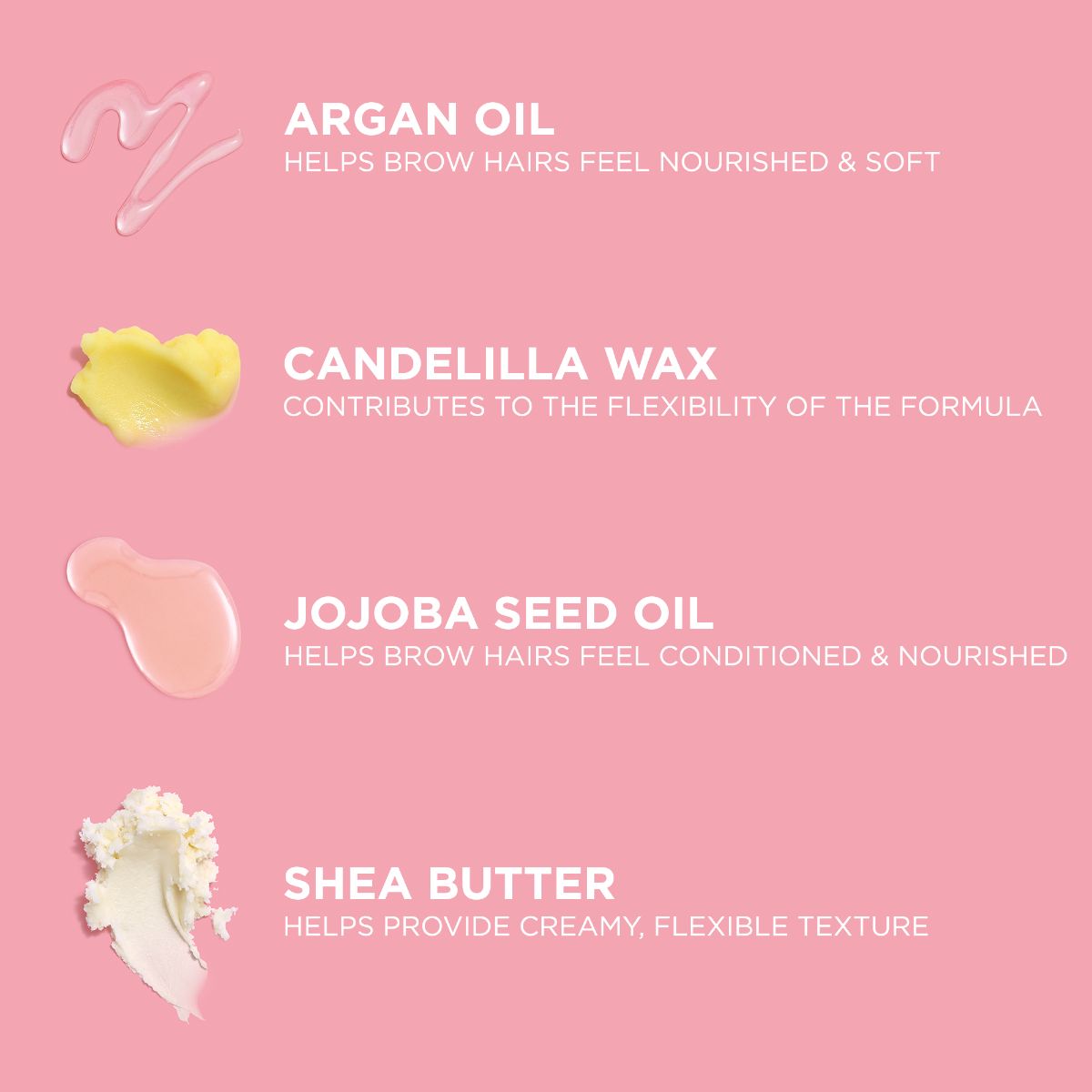 • Shea Butter helps provide creamy, flexible texture AND helps brow hairs feel conditioned and