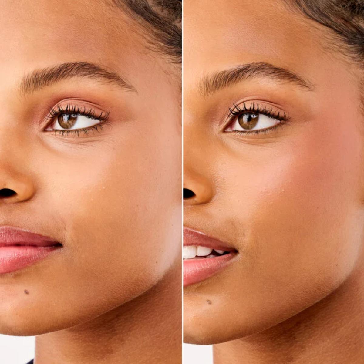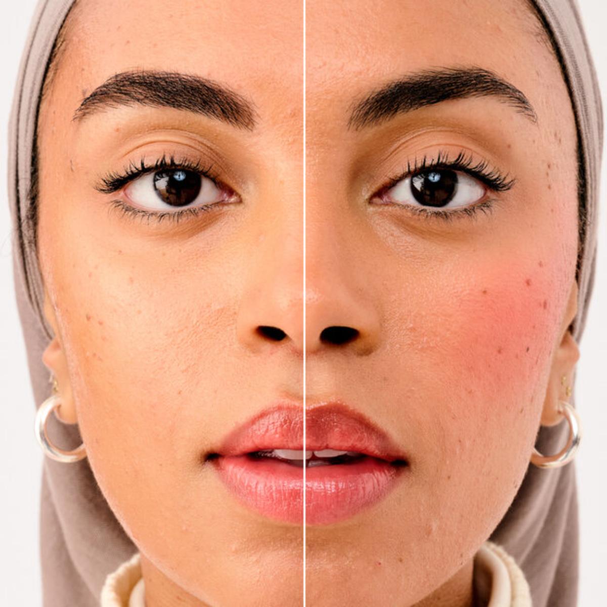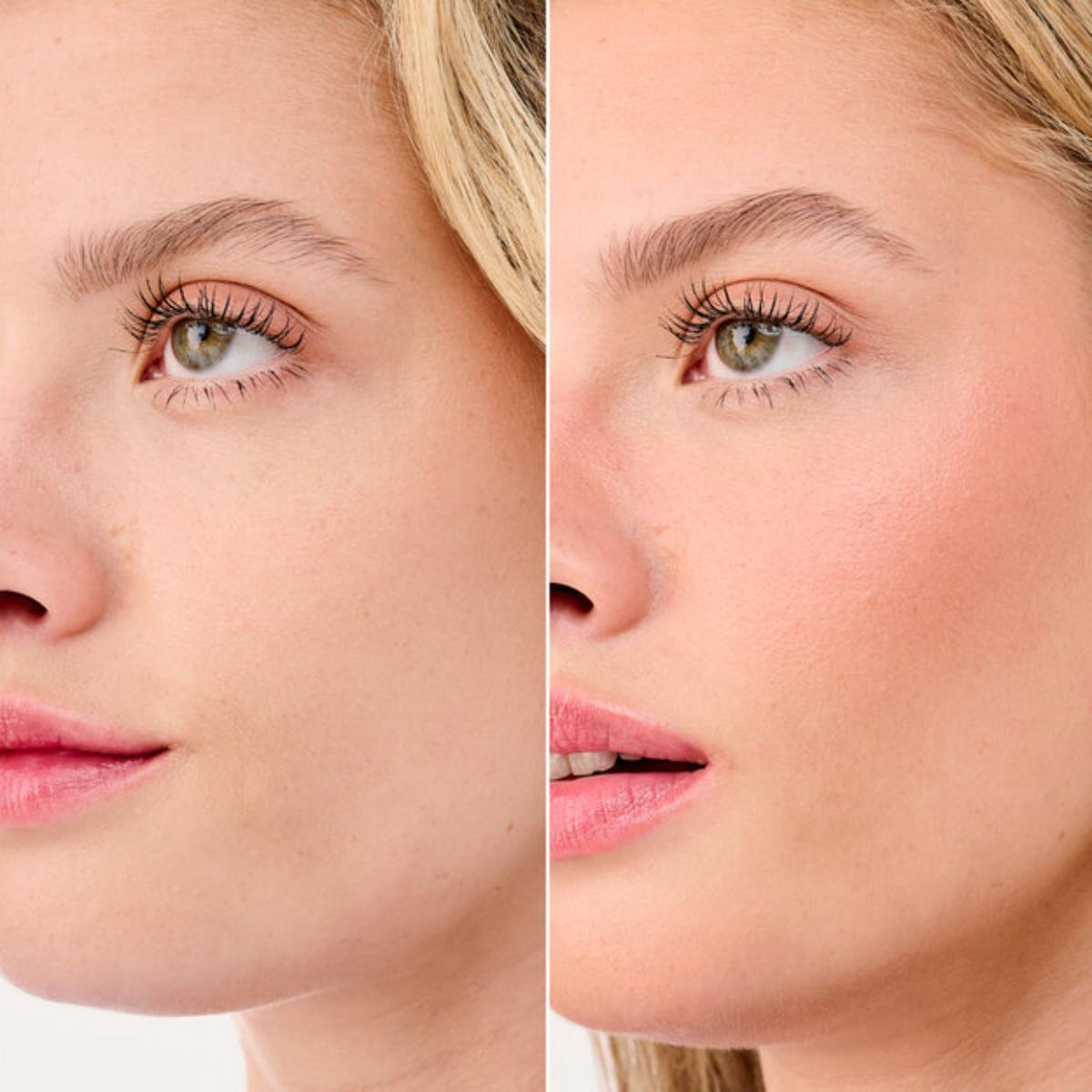 Swirl brush in blush and sweep onto cheeks. Blend & build as desired on bare face or over makeup.