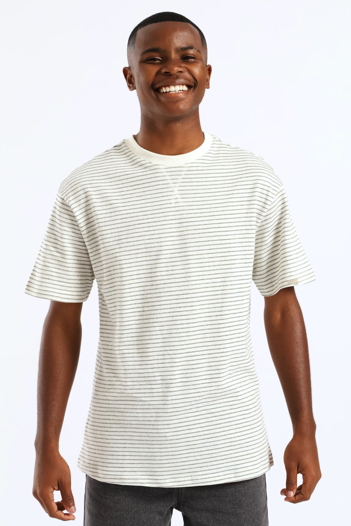 Boys Jacquard Stripe Oversized T-Shirt - White