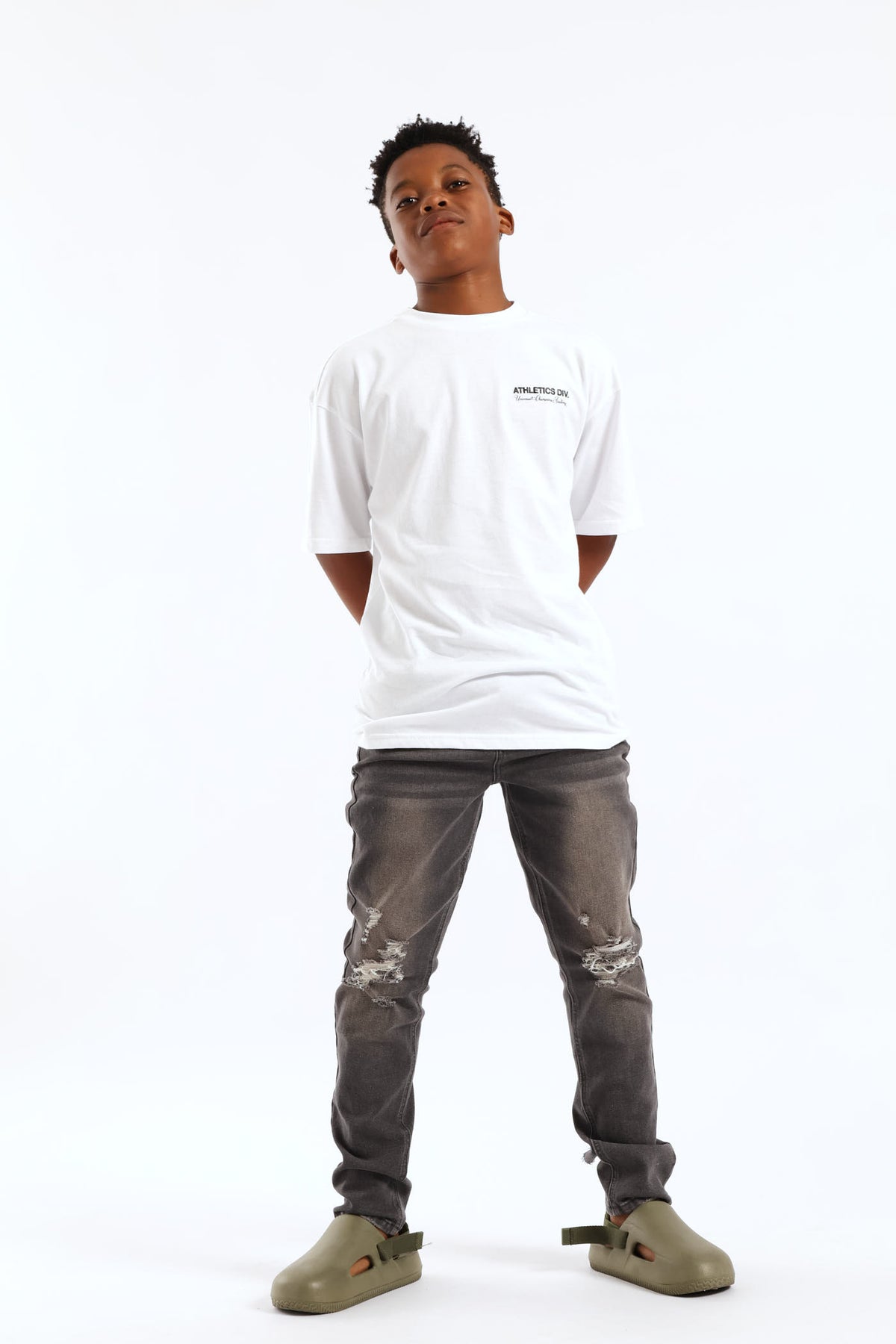 Boys Silcone Athletics Back Print Oversized Tee - White