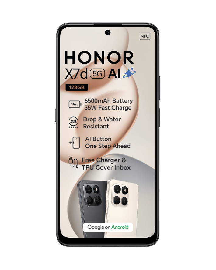 The HONOR X7D is a powerful smartphone built for performance and endurance. Featuring a large 6.77″ smooth-refresh display, a high-resolution 108 MP camera and a massive 6500 mAh battery with fast charging, it’s designed to keep up with busy days. With 256 GB storage and dual SIM support, the HONOR X7D delivers speed, space and reliability in a sleek, modern design.