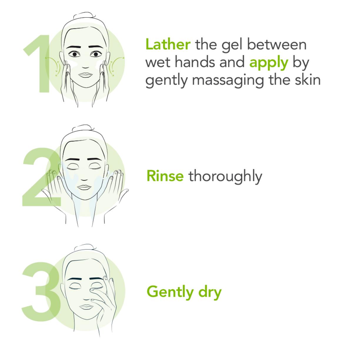 - Step 1: Lather the gel in your wet hands and apply by gently massaging the skin.
