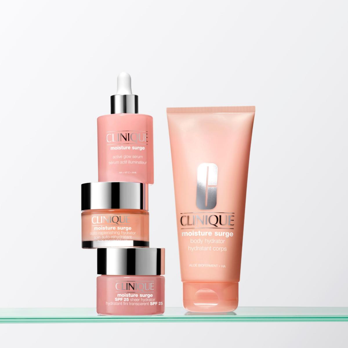 A first-ever serum from our most-loved Moisture Surge collection. Formulated with powerful actives, it exfoliates, hydrates, and brightens to give skin an instant and continuous glow. Clinically proven. Dermatologist tested. Safe for sensitive skin. Allergy tested. 100% fragrance free. Tested on all skin tones.