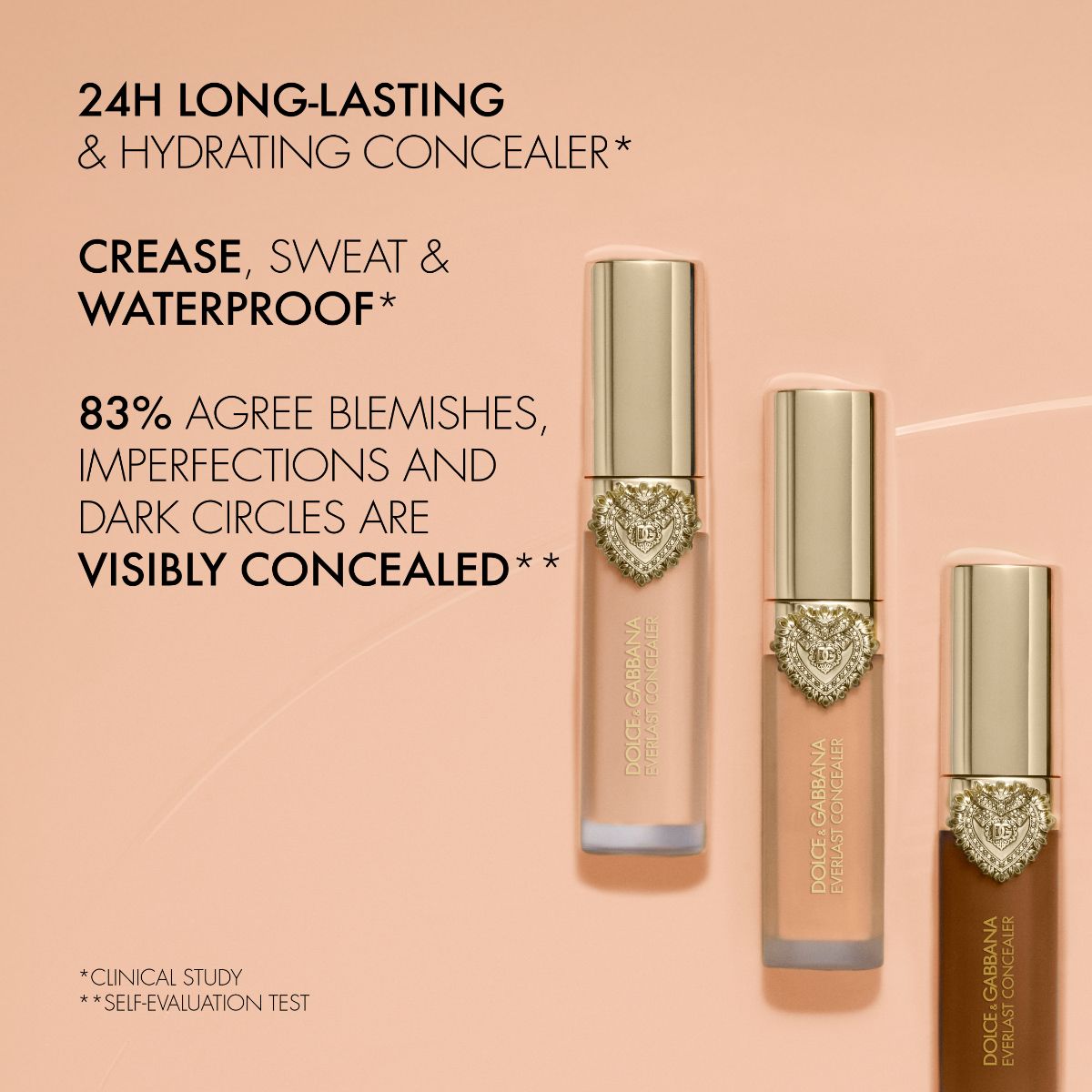 Available in 30 shades that perfectly complement the Everlast Foundation range. Encased in a sophisticated frosted vial with a gold cap, sealed by the iconic Devotion Sacred Heart, the concealer features a bespoke applicator designed for precise multi-way application.