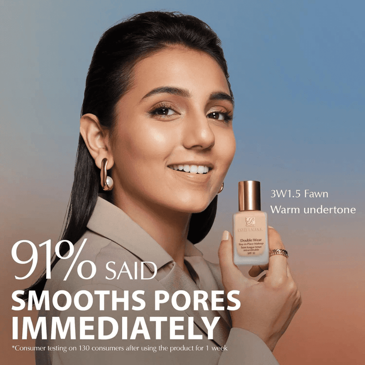 Our best foundation for long wear, Double Wear is the makeup that keeps up—no matter where your day takes you. Apply once and don’t think twice.onfidence. Double Wear Makeup is the fresh matte foundation that looks flawless whatever comes your way. 24-hour wear. Oil-free. Controls oil all day. Sweat-, heat- and humidity-resistant. Lifeproof, waterproof foundation. 24-hour color true.  Now avaliable in a 15ml trail size for selected shades.
