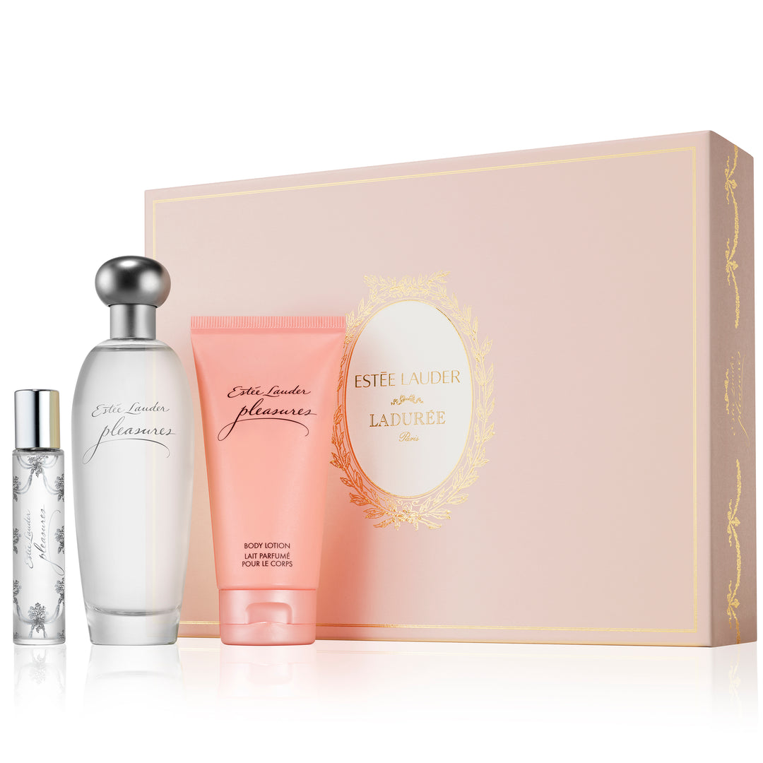 A gift set containing one of life's simple pleasures in a full-size Eau de Parfum Spray, deluxe travel size Body Lotion and Travel Spray. All in a keepsake box with a limited edition Estée Lauder x Ladurée design.