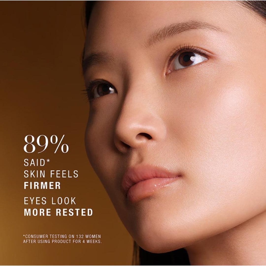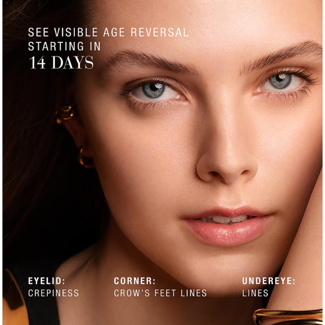 A youthful look is ignited. Eye area feels firmer, looks smoother, less lined, more lifted. Eyes’ youthful contours look revitalized. Undereye dark circles look reduced and eyes look luminous. With this luxury eye cream, the eye area looks transformed, reawakened, brilliantly youthful. Rewind the look of tomorrow, today.