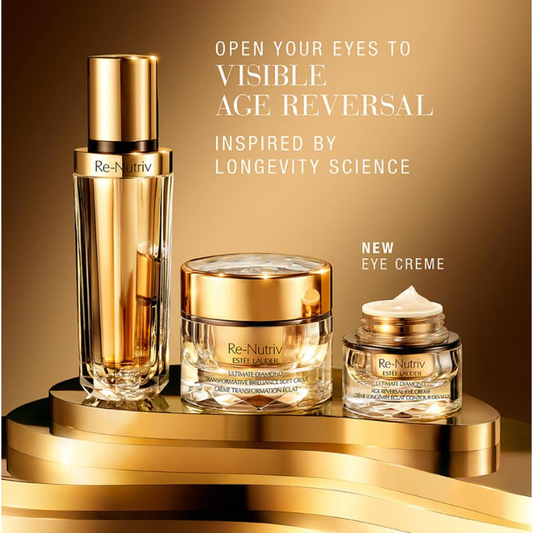 The experience of the anti-aging eye cream is exquisitely enhanced with the diamond-faceted, cooling ceramic wand, crafted to rotate gently over every eye contour without tugging—91% said the wand feels soothing (4). Apply it morning and night using the Eye Age Reversal Ritual developed by Re-Nutriv estheticians.