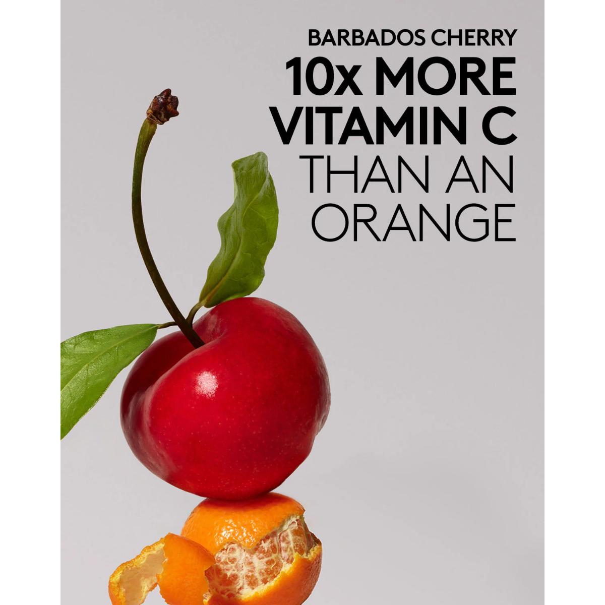 Three forms of Vitamin C-rich Barbados Cherry (enzyme, ferment + fruit water); brighten, clarify + renew skin