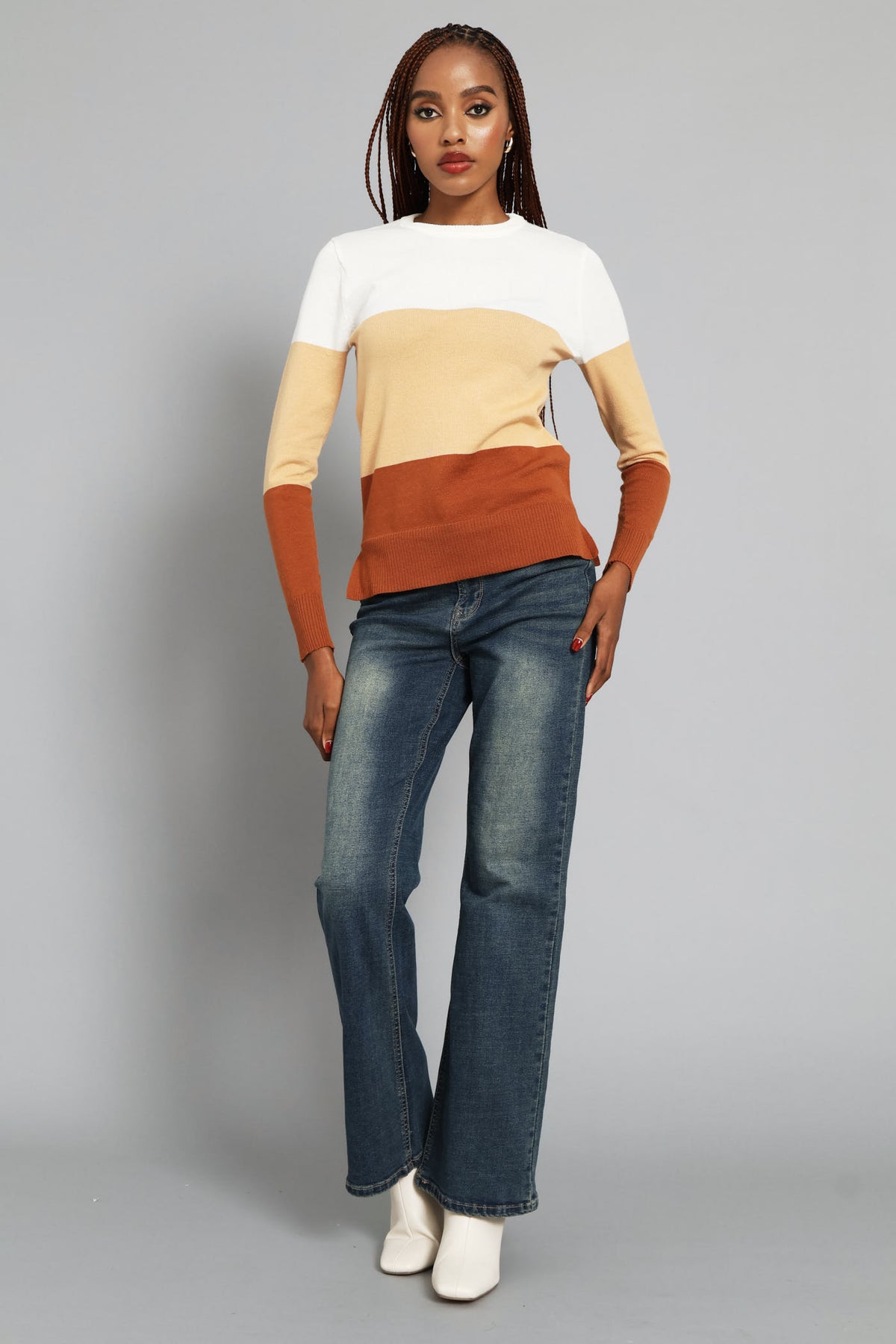 Colourblock Pullover - Caramel/Cream