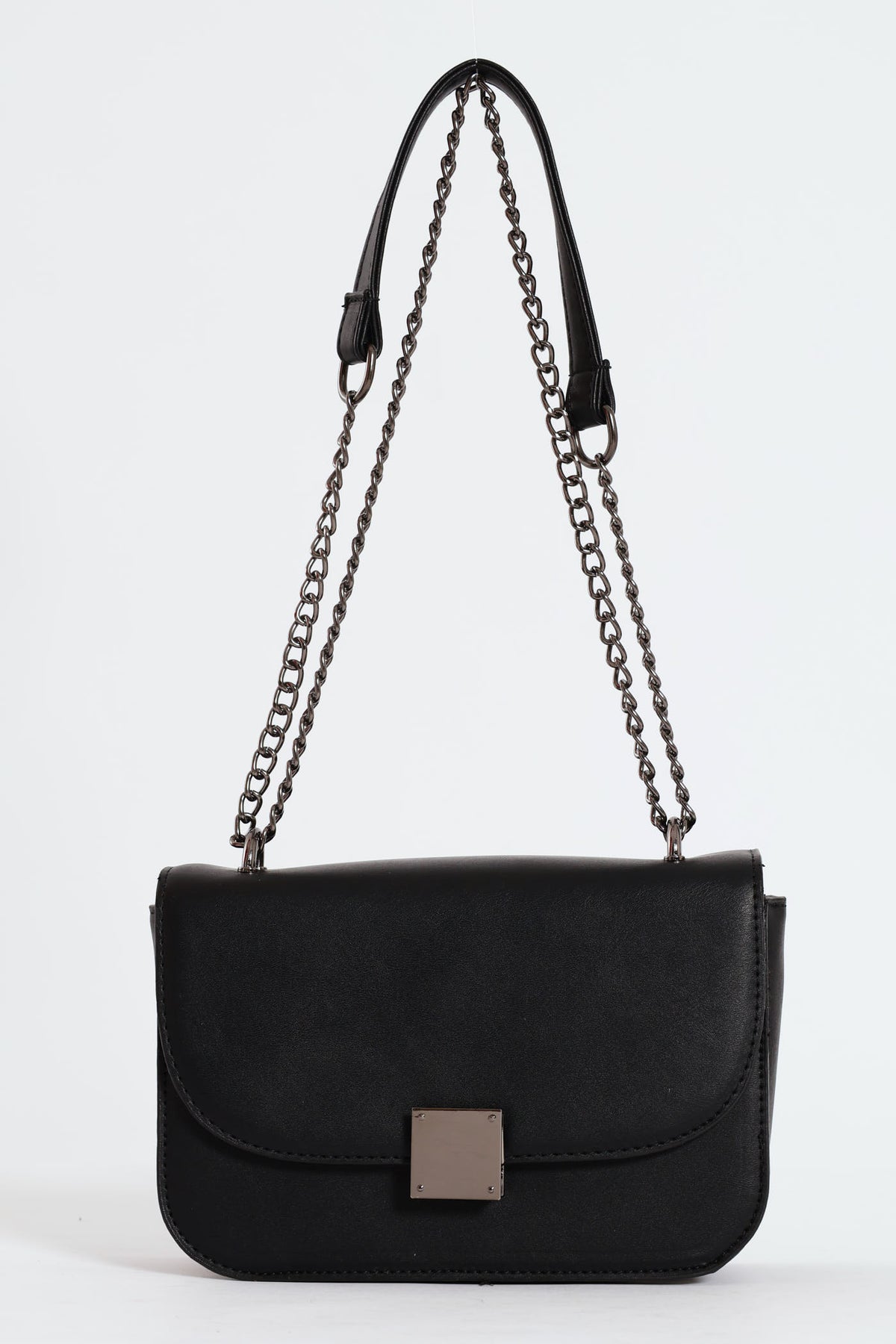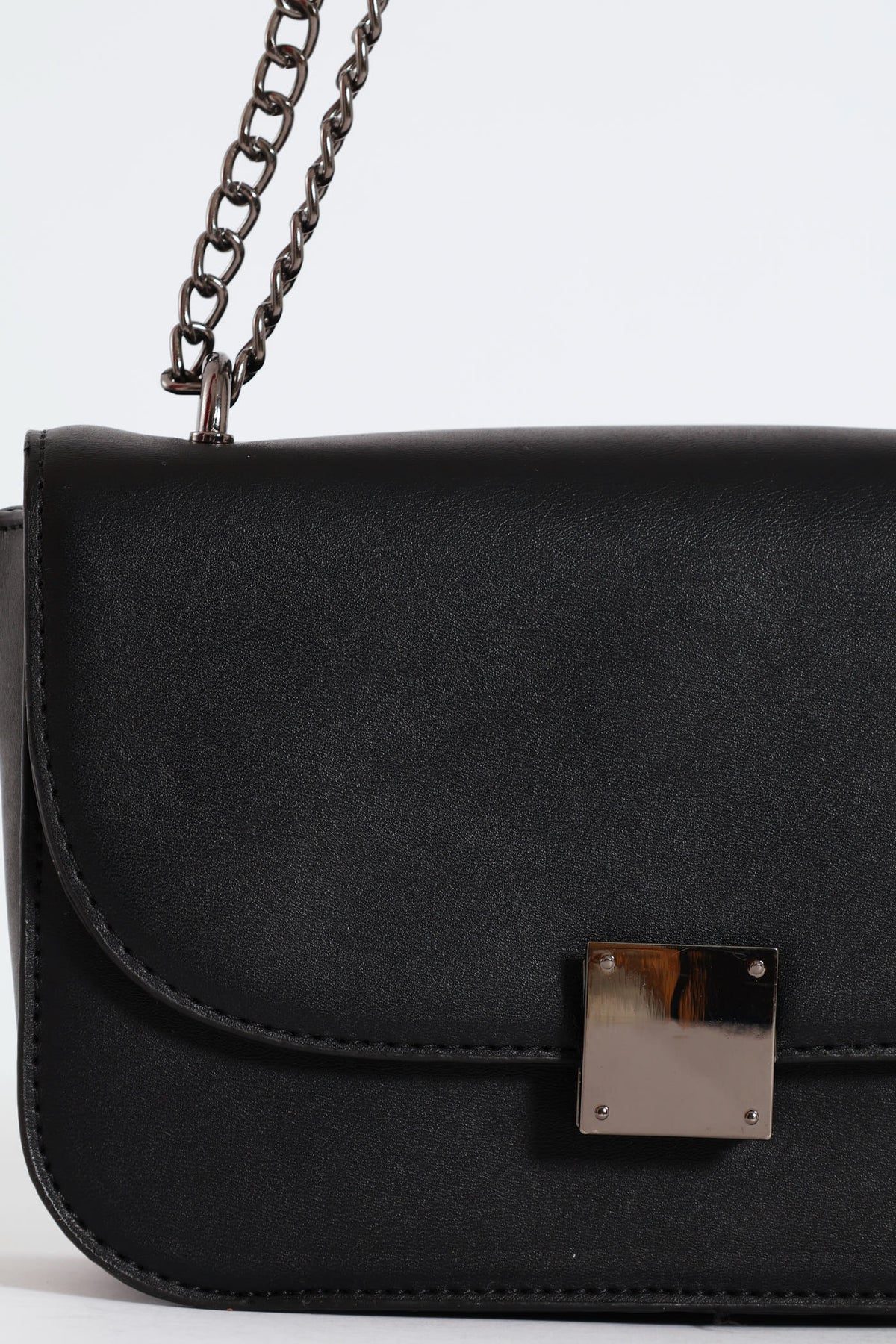 Unleash your inner fashionista with our Gunmetal Front Clasp Satchel Bag in classic black. This stylish bag features a chic gunmetal clasp and a spacious interior, perfect for carrying all of your essentials. Elevate your look and stay organized with this must-have accessory.