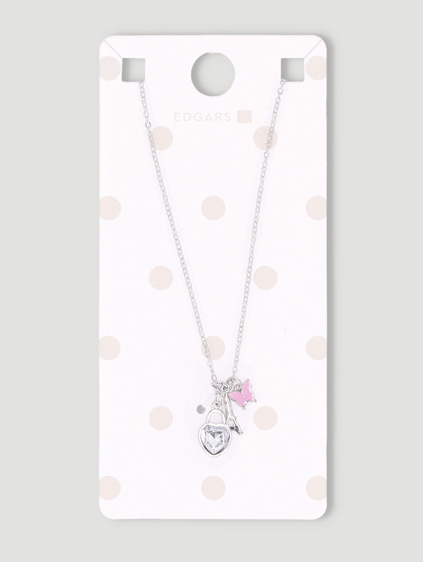 Pre-Girls Heart Butterfly Charm Necklace - Silver