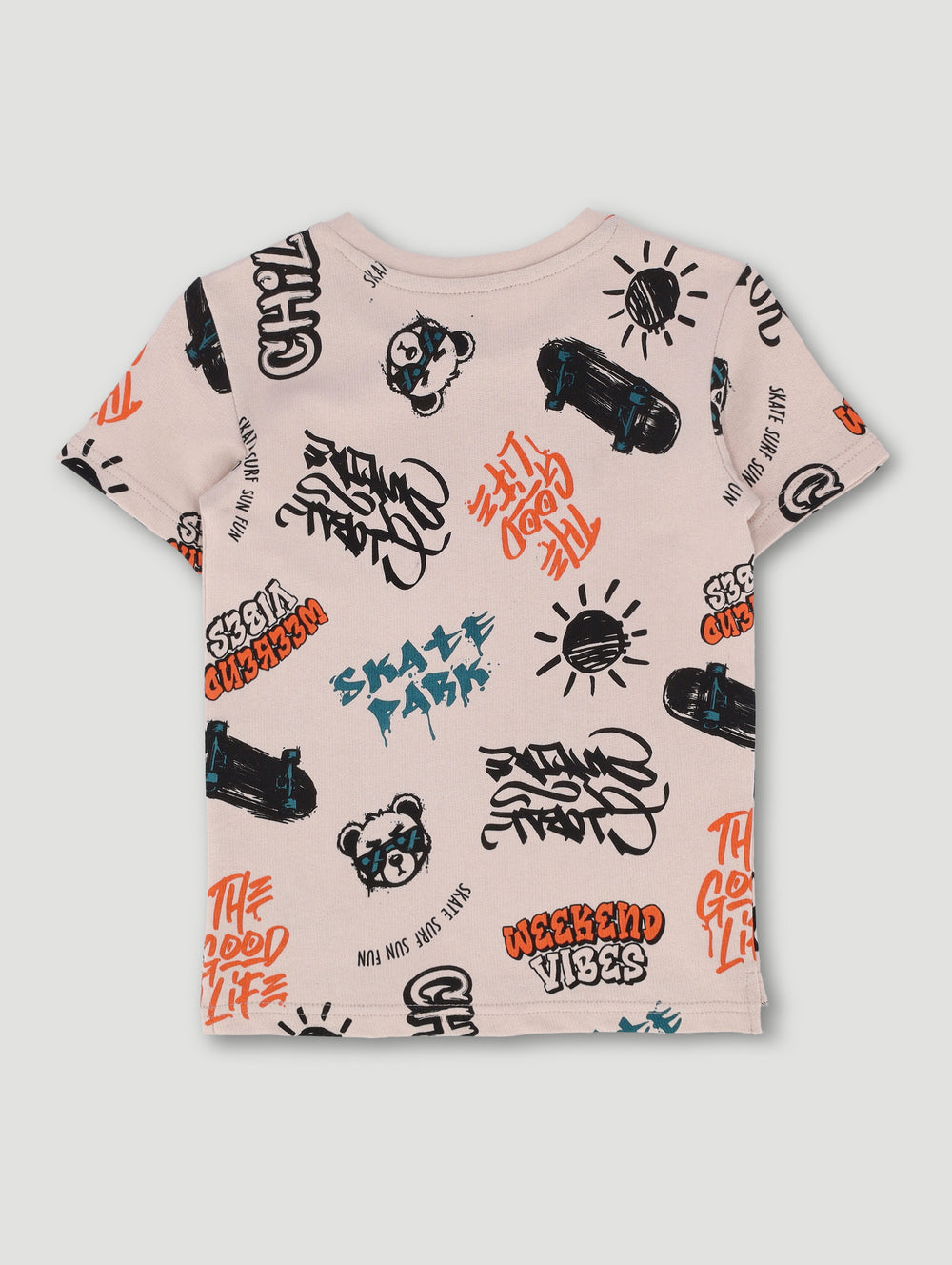 Pre-Boys Teddy Graffiti Fleece Crew Top - Stone