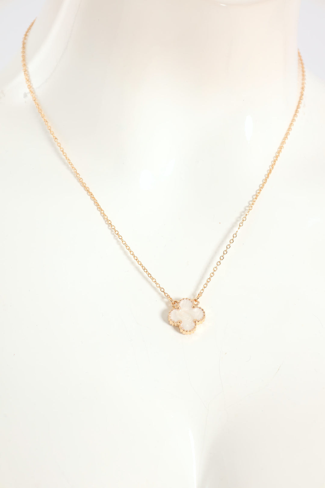 2 Pack Pearl Enamel Clover Stud & Pendant - Gold/White