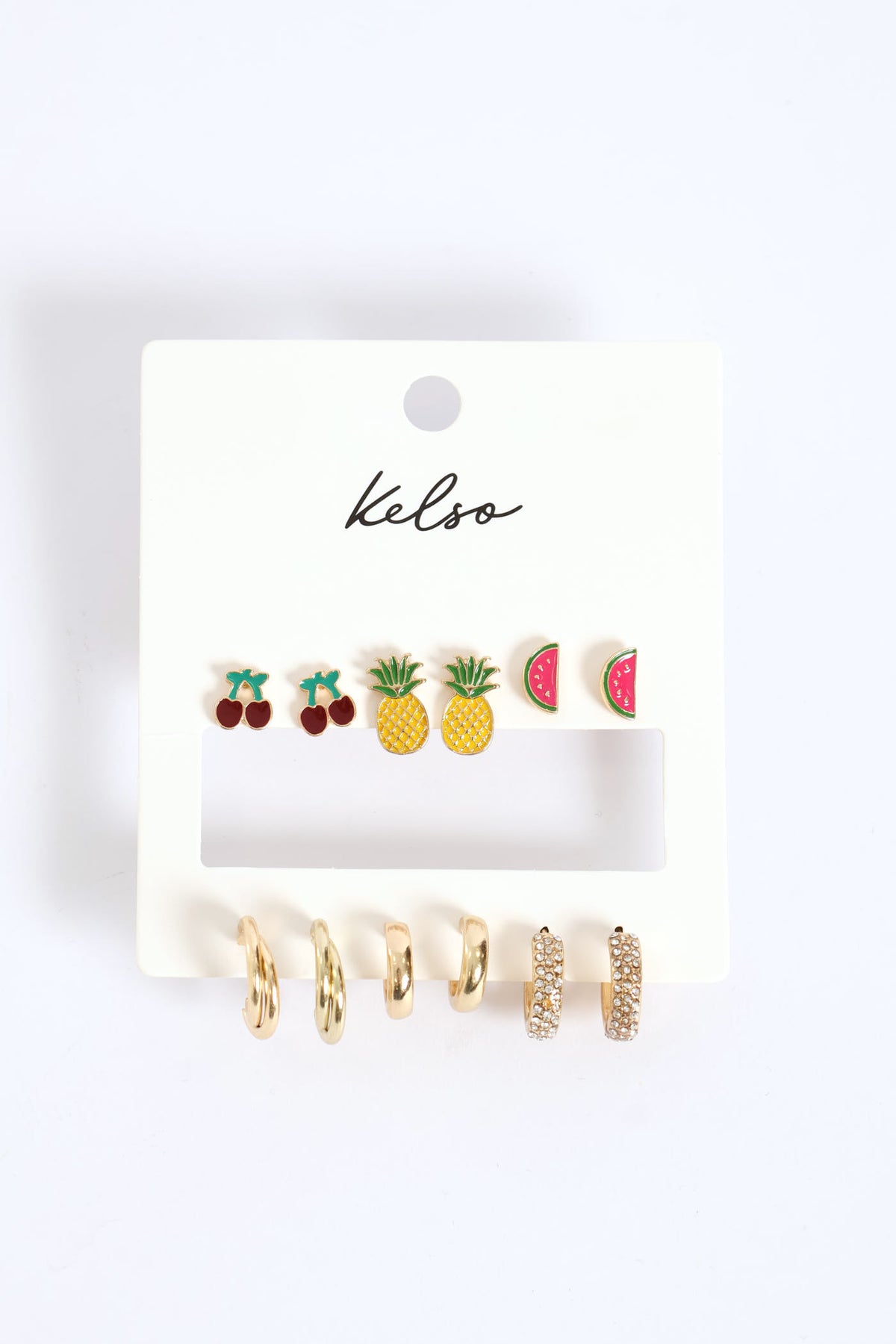 6 Pack Tropical Fruit & Hoop Earrings - Gold