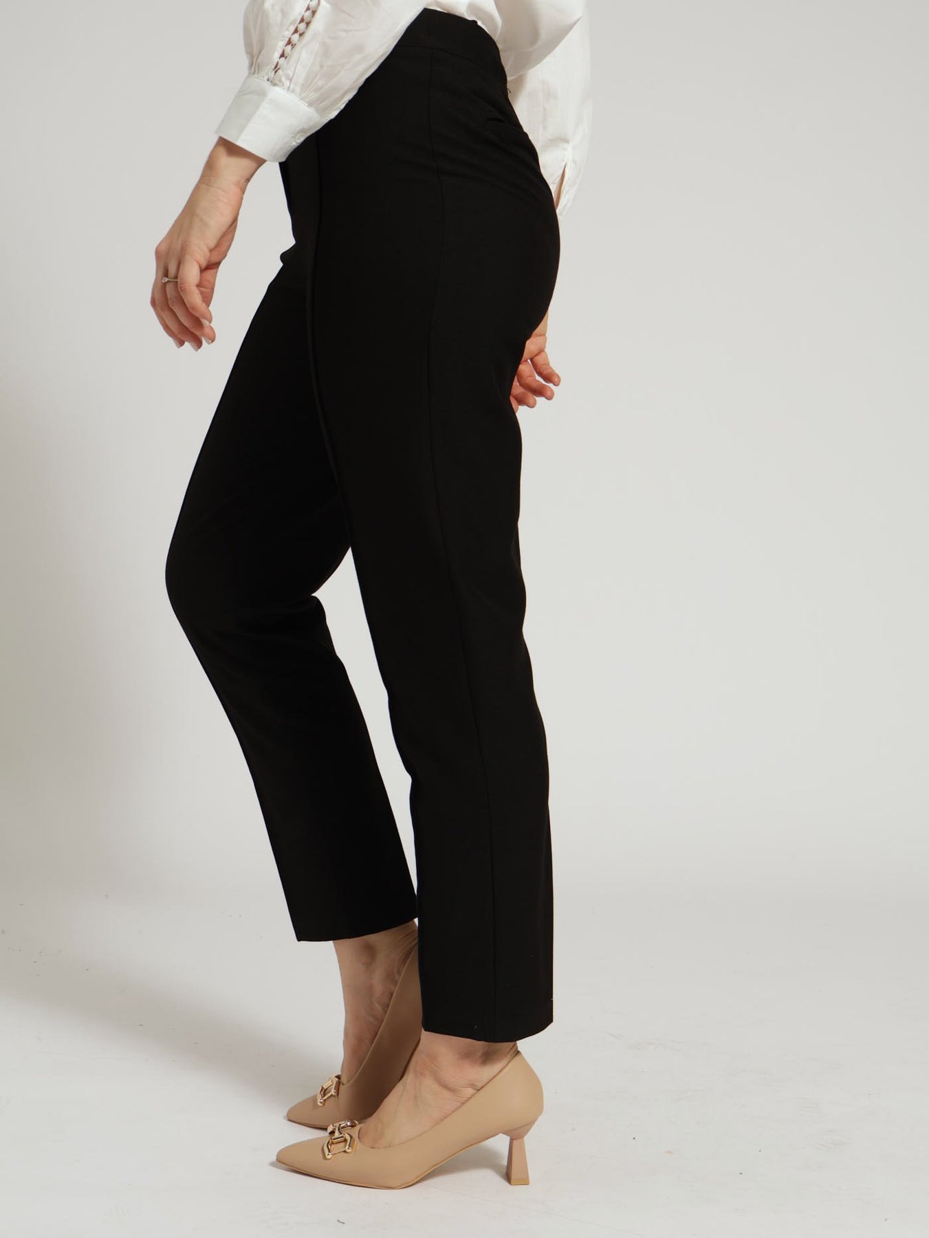 D-Ring Pin Tuck Slim Leg Pants - Black