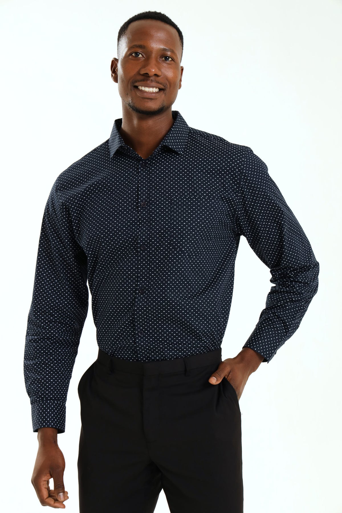 Regular Ditsy Abstract Printed Shirt - Navy/White