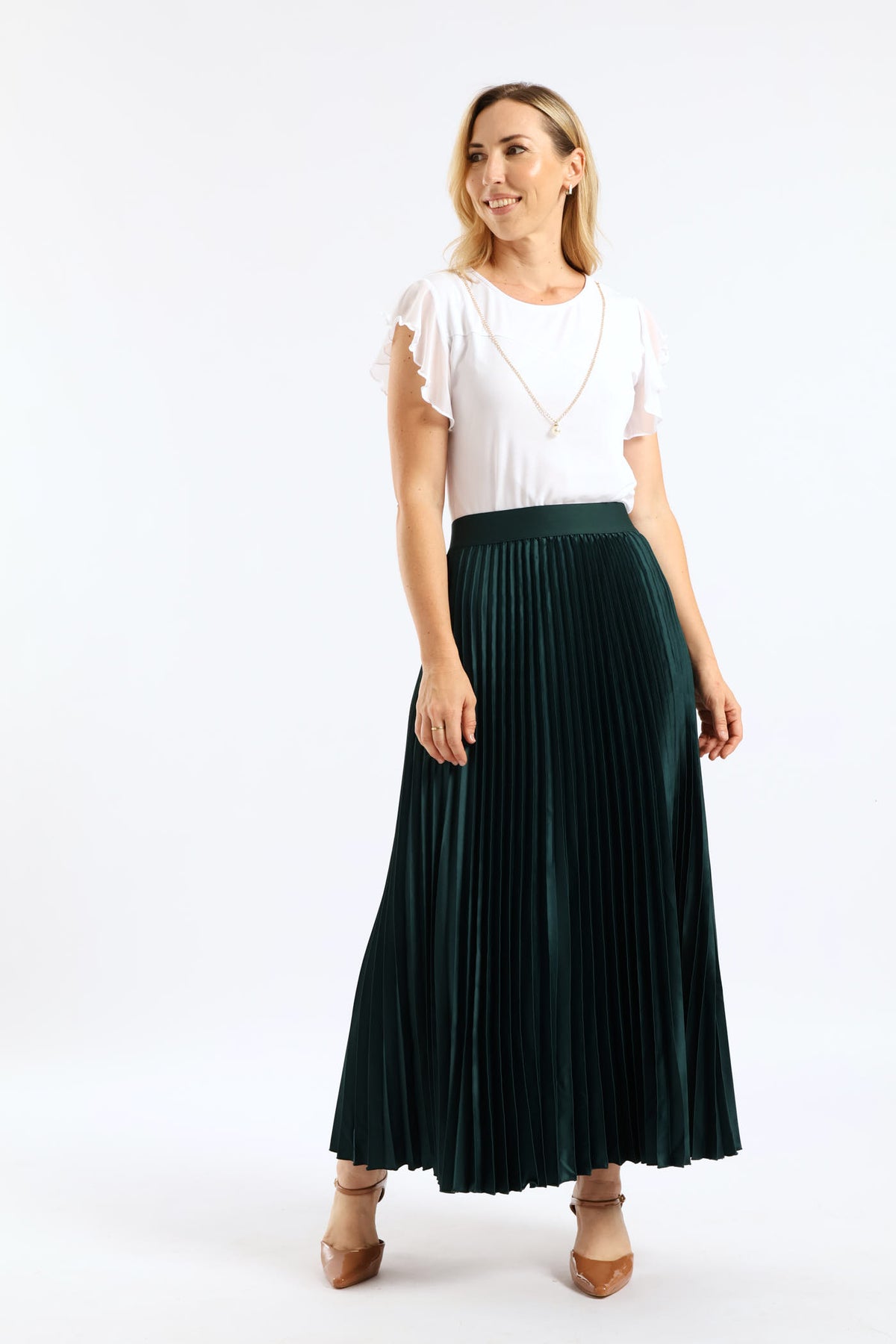 Pleated Satin Maxi Skirt - Bottle