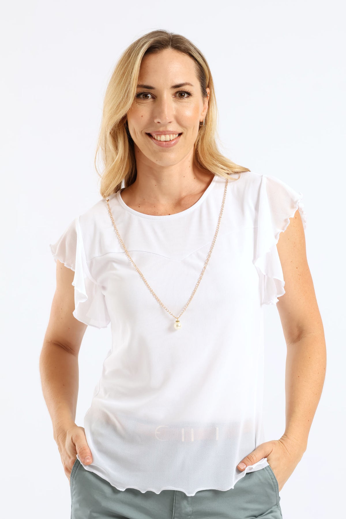Flutter Sleeve Mesh Blouse - White