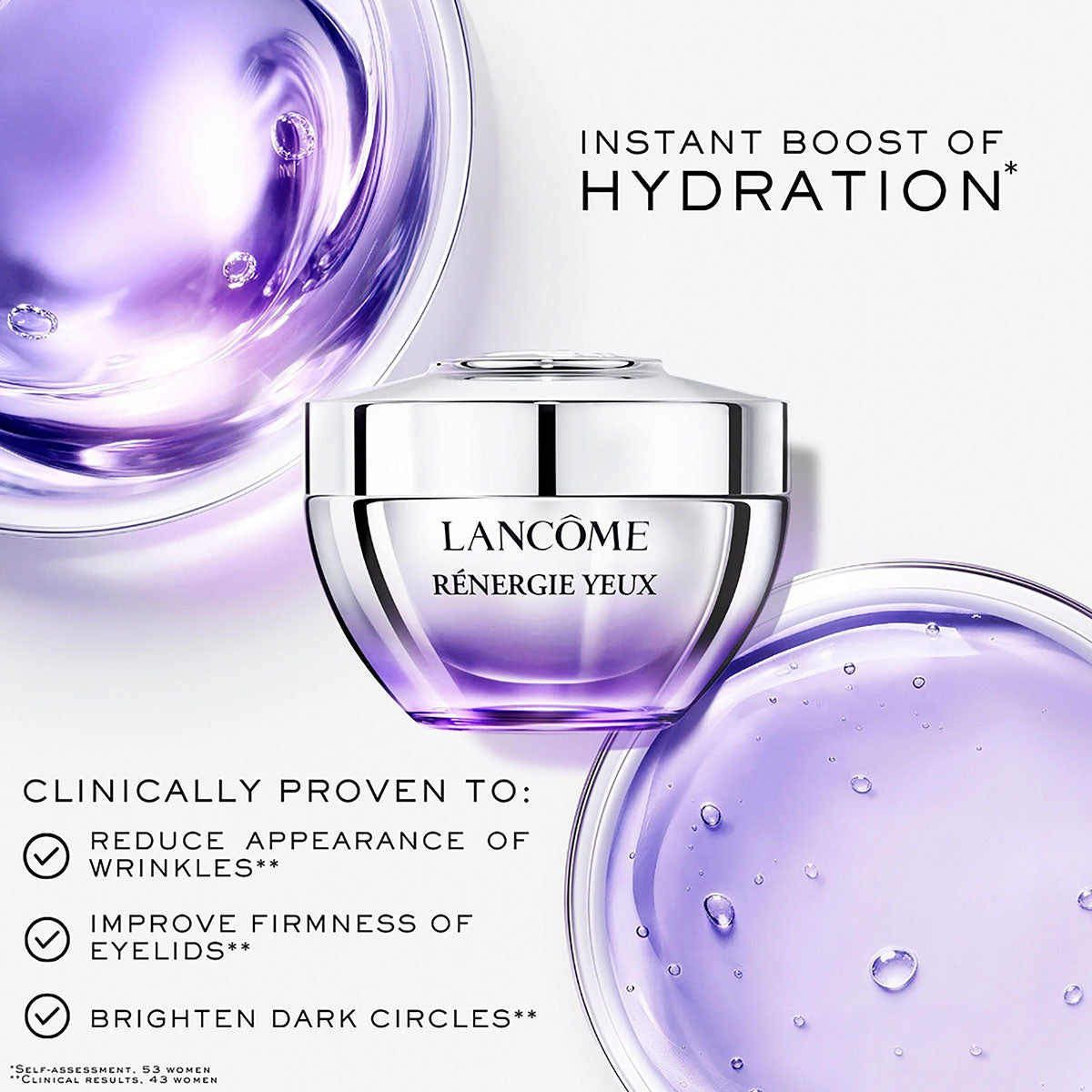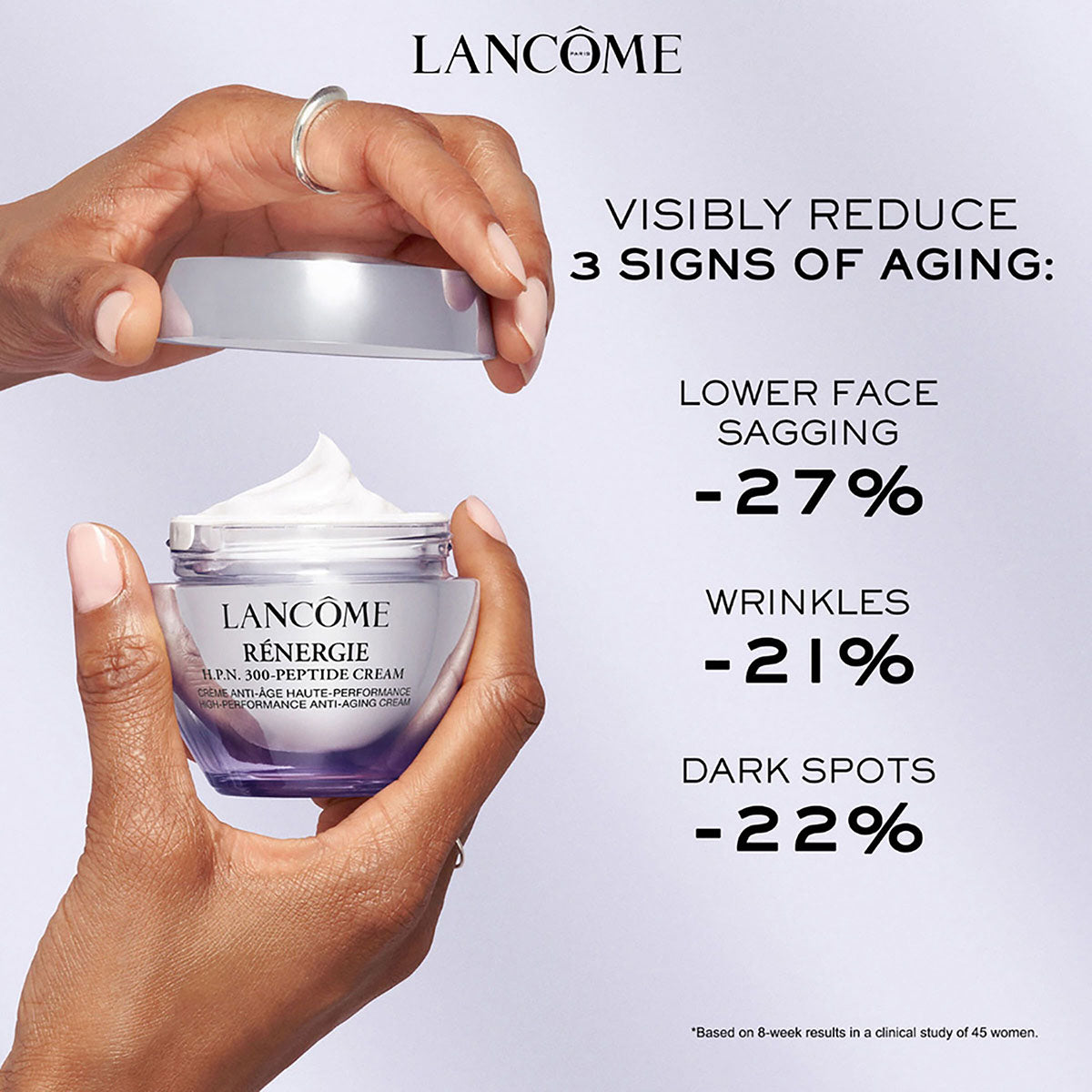 Lancôme innovation combines hyaluronic acid, niacinamide, and ferulic acid in a single formula. Renergie Triple Serum is Lancome's first serum to contain three active ingredients in one formula, enabling skin renewal at every layer. Discover high-performance anti-aging care with this skincare routine set consisting of serum, day cream, and eye cream.