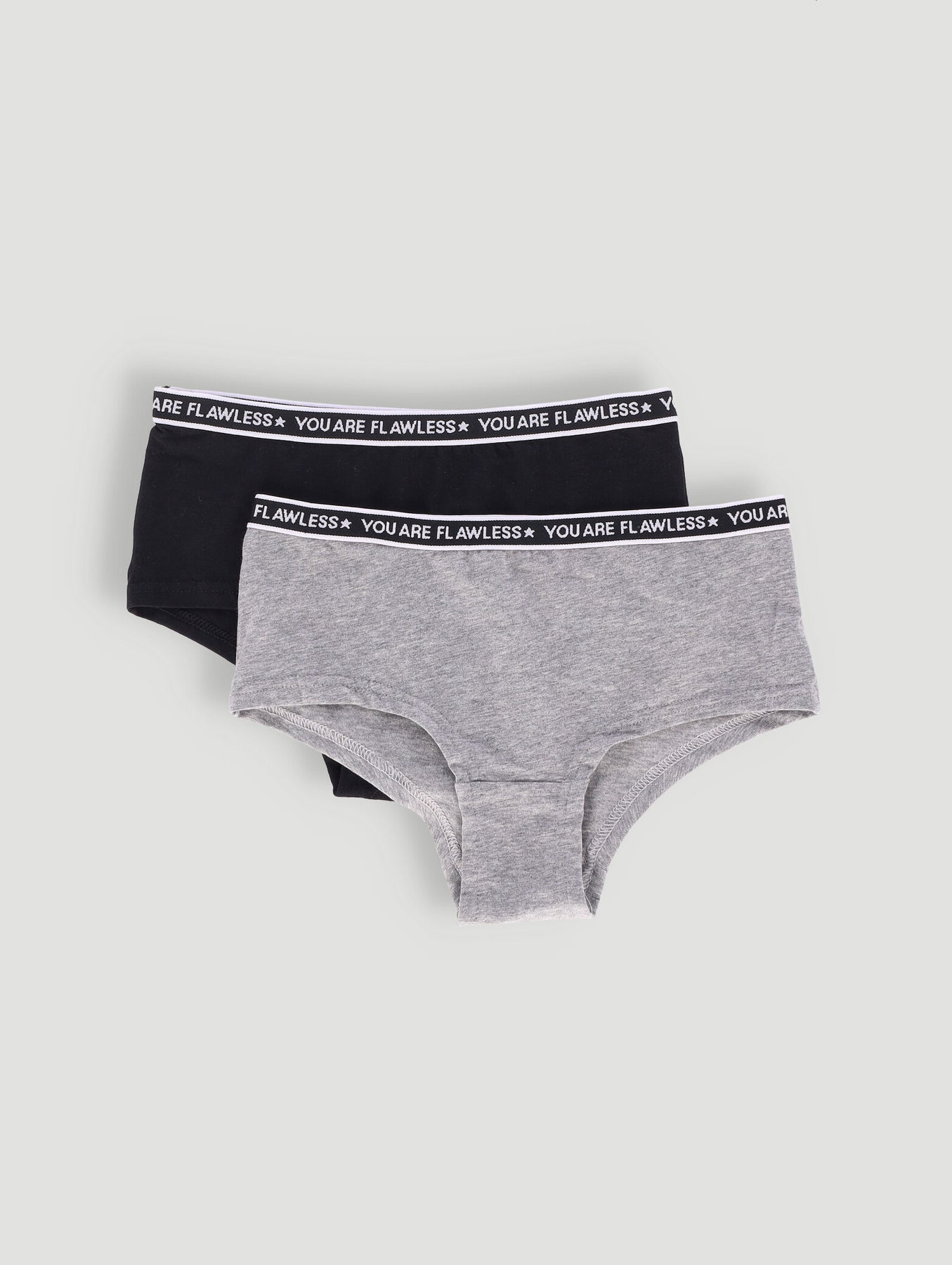Girls 2 Pack Boyleg Panties - Black/Grey