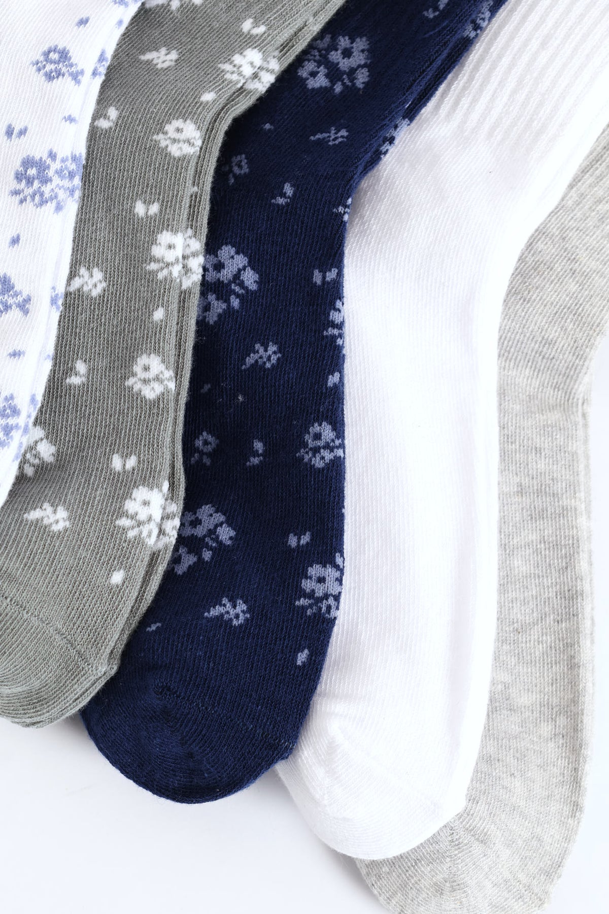 Girls 5 Pack New York Floral Anklet Socks - Grey