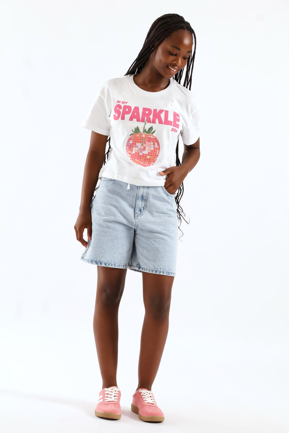 Girls Boxy Sparkle Tee - White