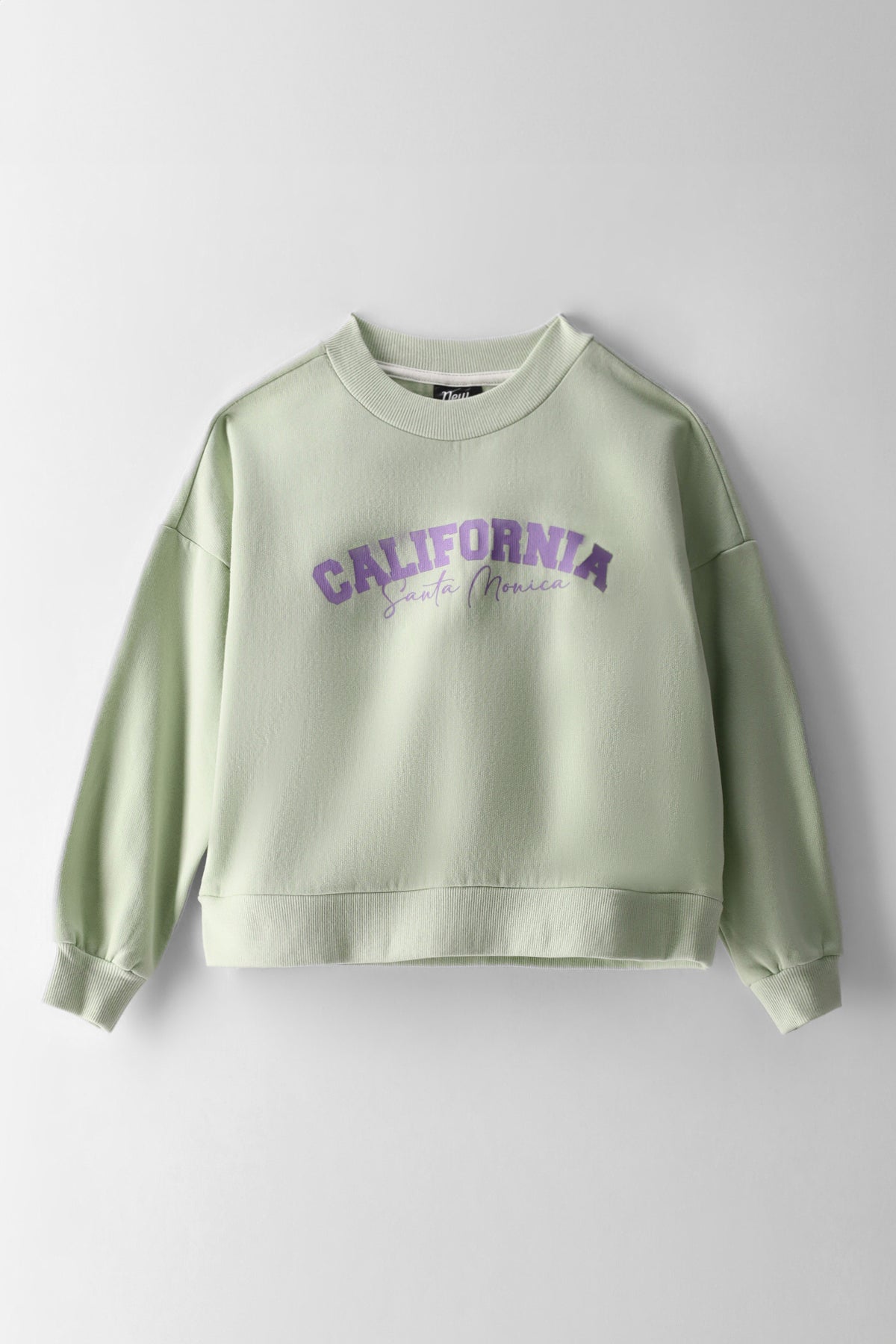 Girls Slogan Crew Pullover - Sage