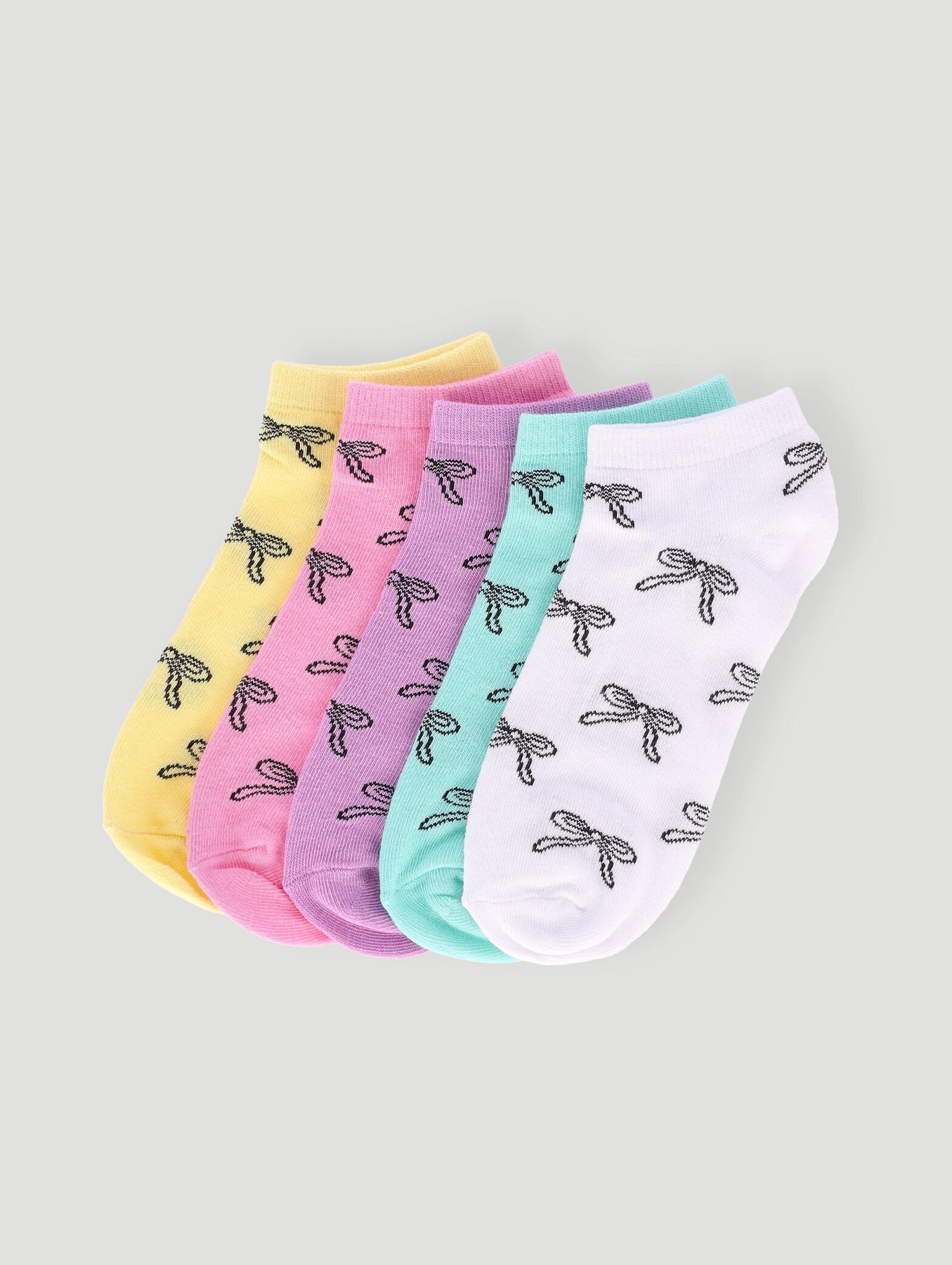 Girls 5 Pack Bows Low Cut Socks - Multi
