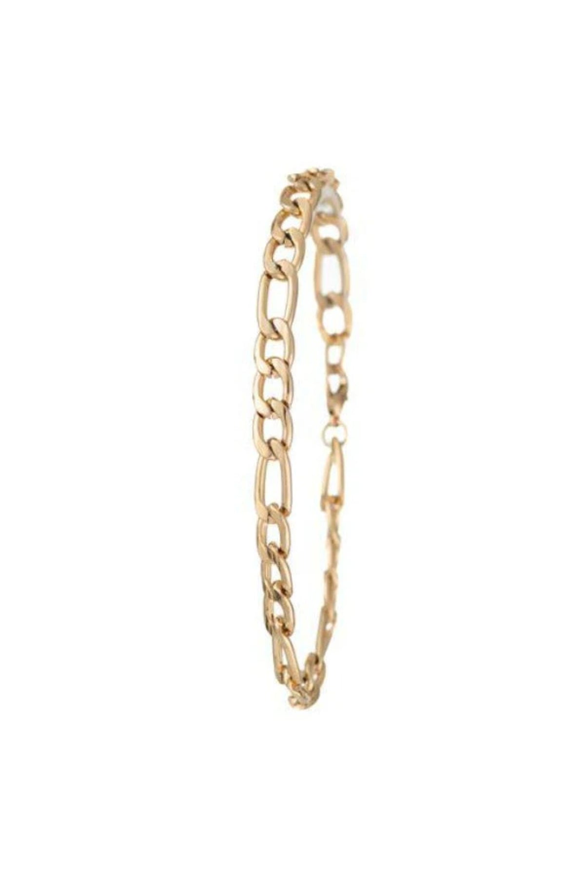 Gold & Leather Watch & Figaro Bracelet Box Set - Gold