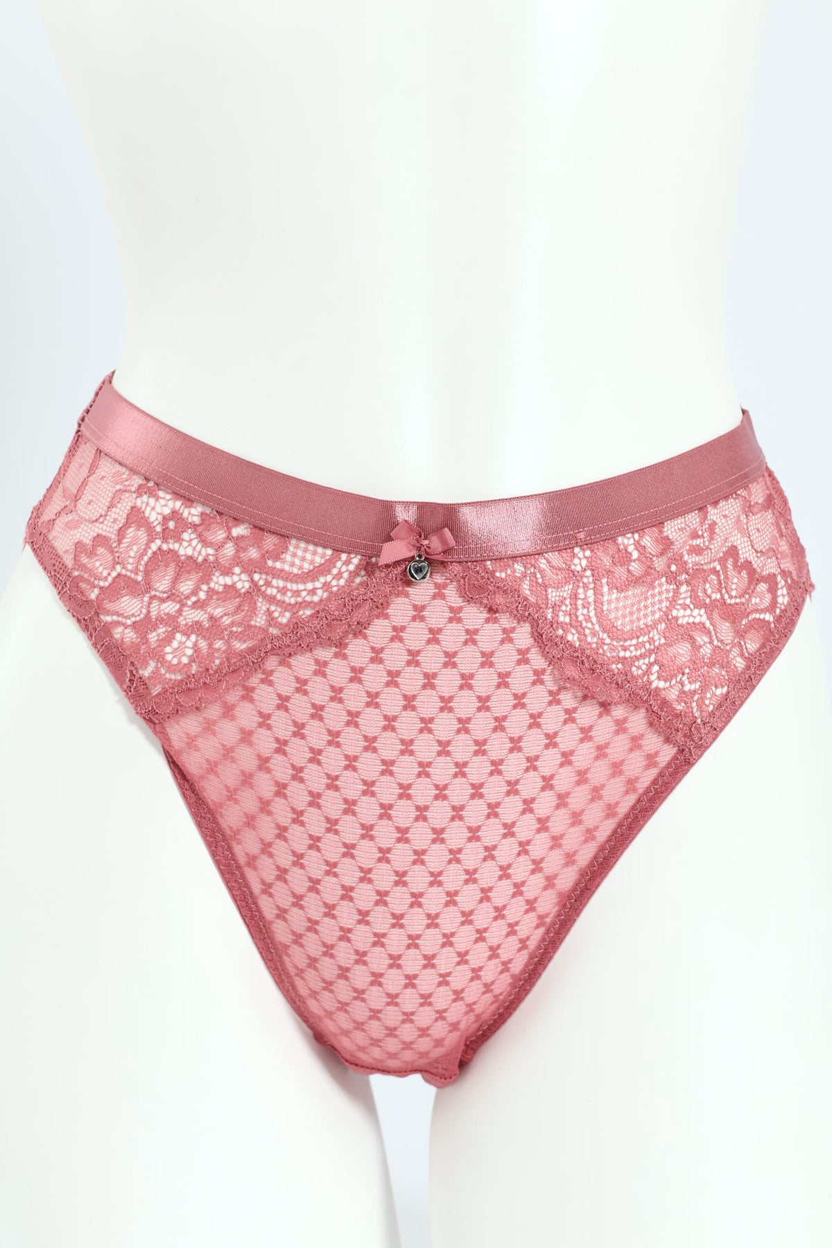 Lace & Mesh Hi Cut Panties - Rose