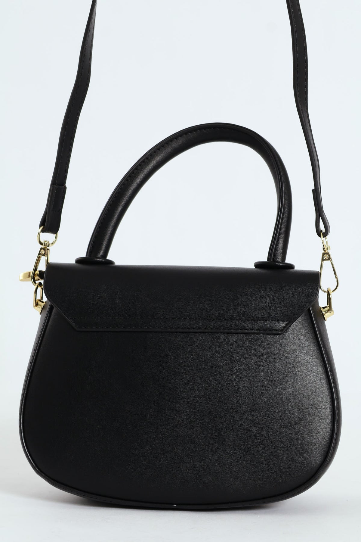 The faux leather bag is fully lined with gold hardware and a handle drop of 11 cm.