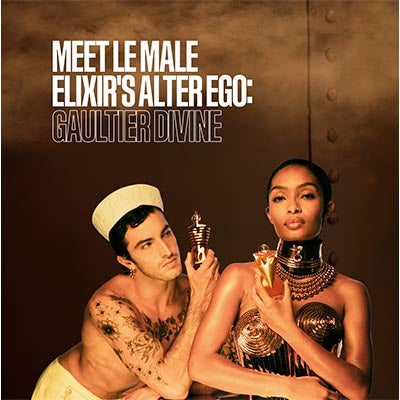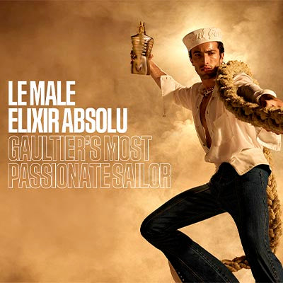 Heatwave warning for the Gaultier ship. With Le Male Elixir Absolu on board, sensuality is at its peak and the intensity is decidedly torrid. Beneath the resplendent case, the incandescent golden torse bottle radiates with preciousness and opulence. This fiery, aromatic, amber-spiced desire elevates the emotions to the extreme. Let yourself be carried away.