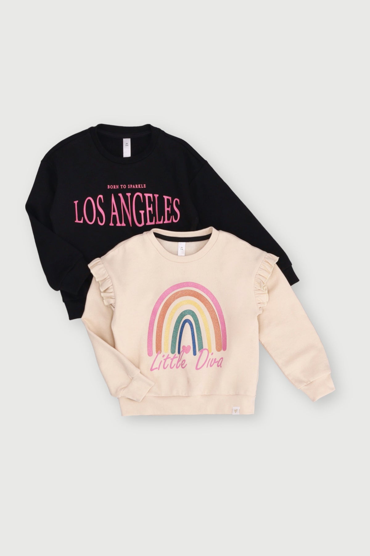 Pre-Girls 2 Pack Lil Diva Fleece Tops - Stone/Black
